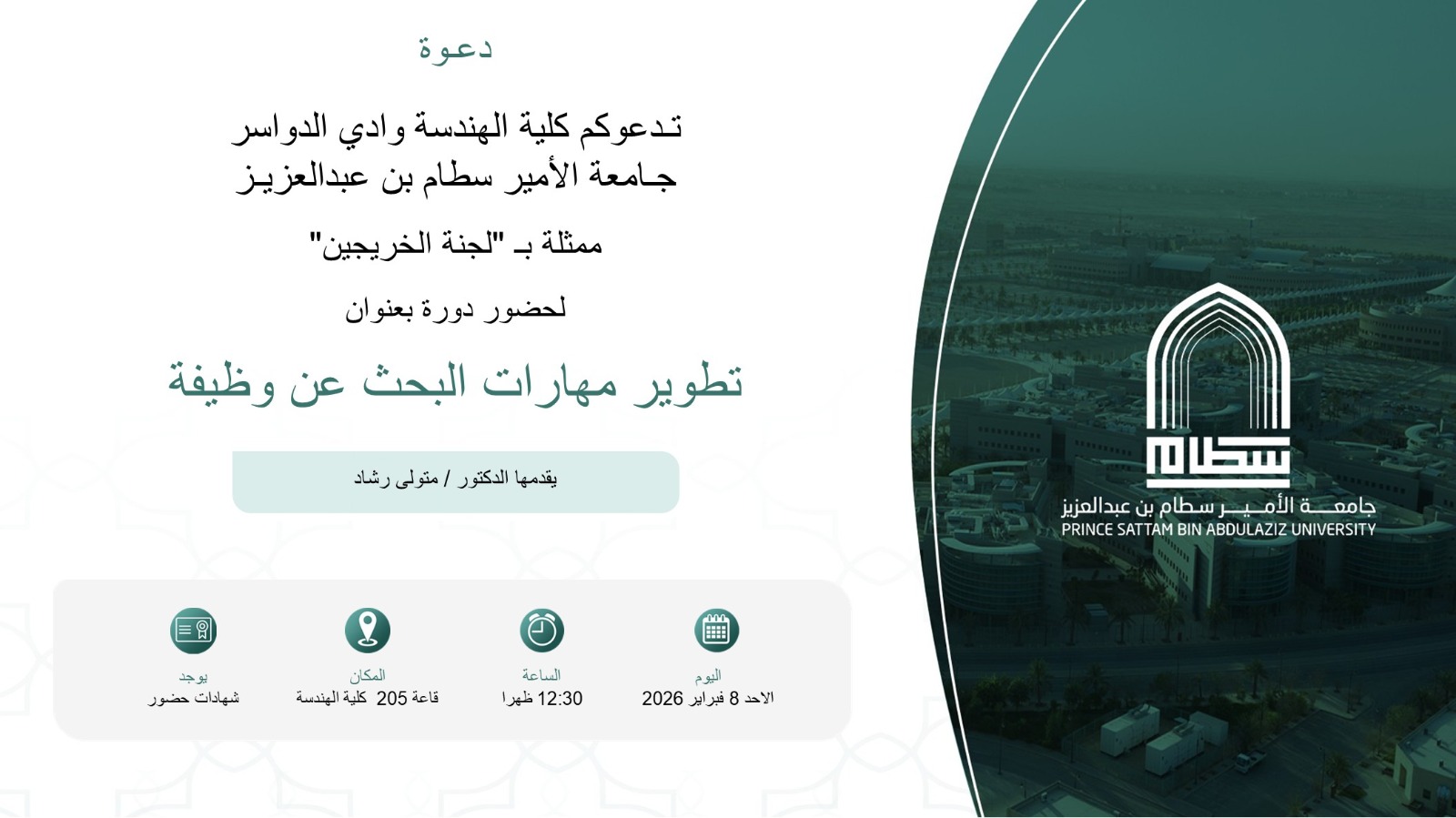 يسر كلية الهندسة دعوتكم لحضور دورة تدريبية بعنوان “تطوير مهارات البحث عن وظيفة"