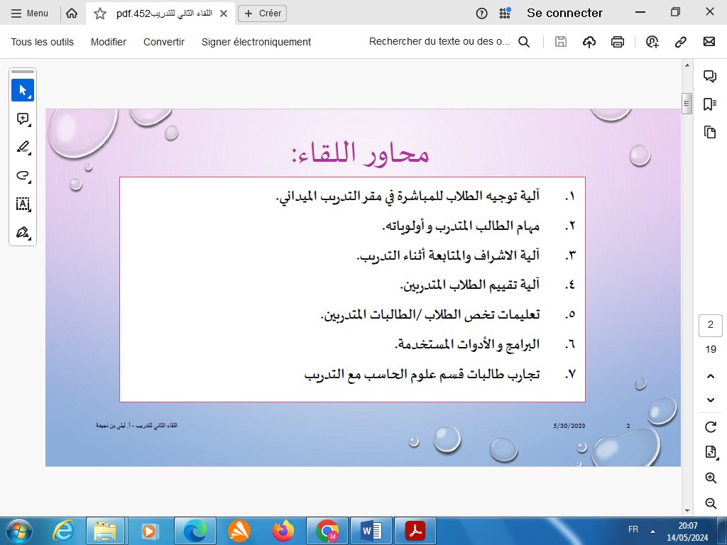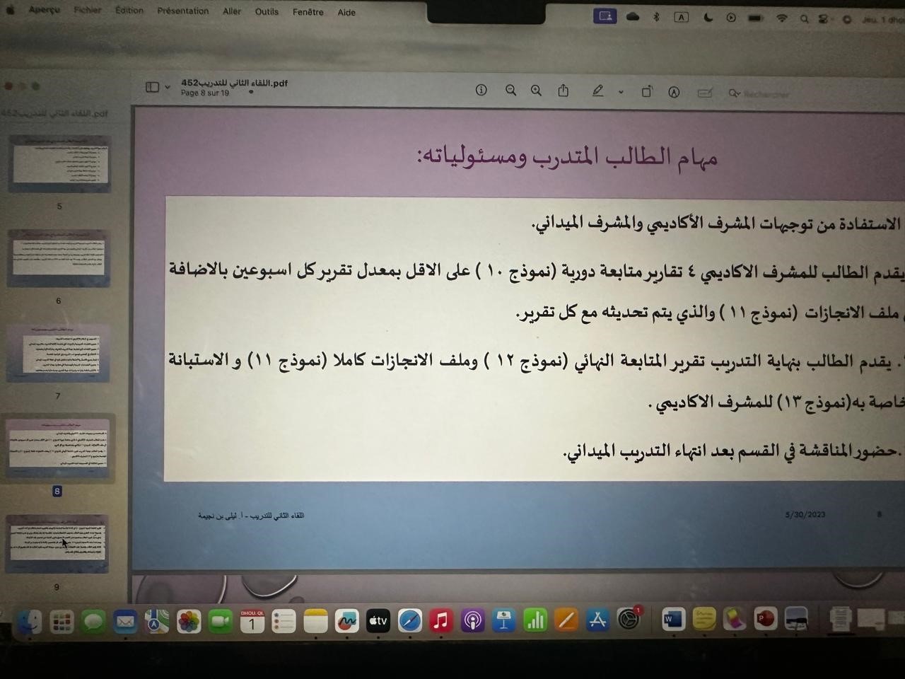 عقد برنامج علوم الحاسب بكلية الهندسة بوادي الدواسر شطر الطالبات بالتنظيم مع لجنة التدريب الميداني بالكلية "اللقاء الثاني للتدريب الميداني " للطالبات و ذلك يوم الخميس 01-11-1445 هـ الموافق ل 09/05/2024 م على الساعة ال5 مساءا و امتد اللقاء الى مدة ساعتين, حيث قدمت اللقاء الأستاذة ليلى بن نجيمة و تمحور اللقاء حول شرح لبقية متطلبات التدريب الميداني.