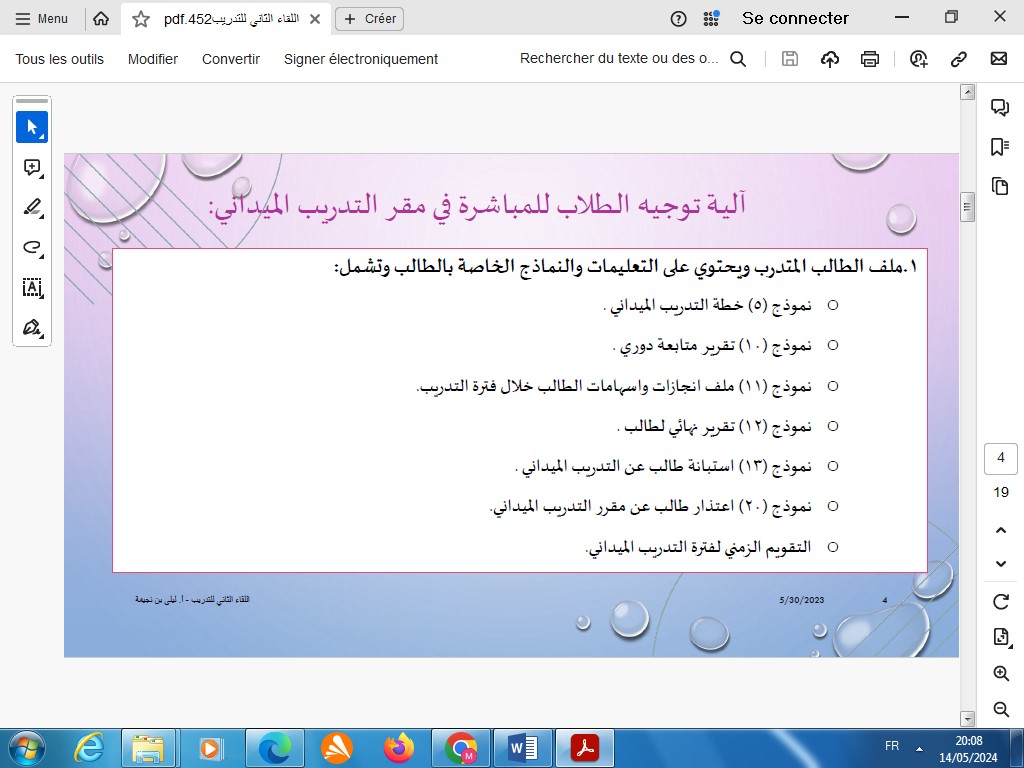 آلية توجيه الطلاب للمباشرة في مقر التدريب الميداني.