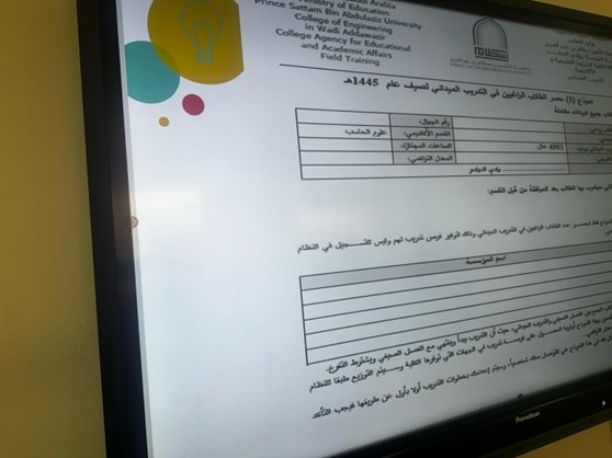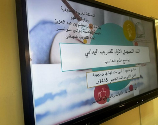 عقد برنامج علوم الحاسب بكلية الهندسة بوادي الدواسر شطر الطالبات بالتنظيم مع لجنة التدريب الميداني بالكلية "اللقاء التمهيدي الأول للتدريب الميداني " للطالبات و ذلك يوم الخميس 27-07-1445 هـ , حيث قدمت اللقاء الأستاذة ليلى بن نجيمة و تمحور اللقاء حول شرح مبدئي لمقرر التدريب و متطلباته كما تضمن اللقاء المحاور التالية و هي: