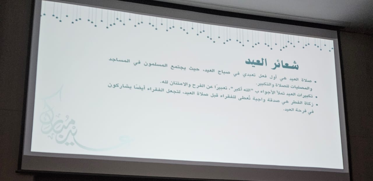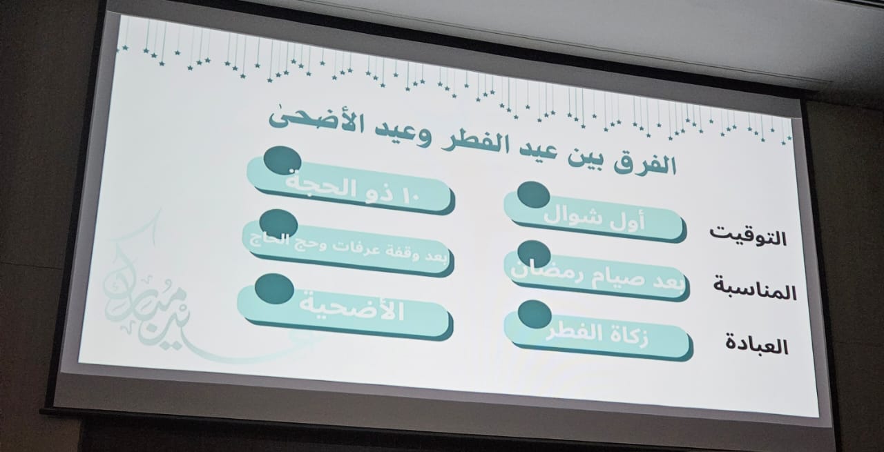 جاءت الفعالية بهدف نشر أجواء الفرح وتعزيز روح الترابط والمودة بين الطالبات بمناسبة عيد الفطر المبارك، حيث تضمّن البرنامج عرضًا تقديميًا تفاعليًا سلط الضوء على أبرز الطقوس والعادات التي يمارسها المسلمون حول العالم في الاحتفال بهذه المناسبة المباركة، والتي تأتي بعد ختام شهر رمضان الكريم.