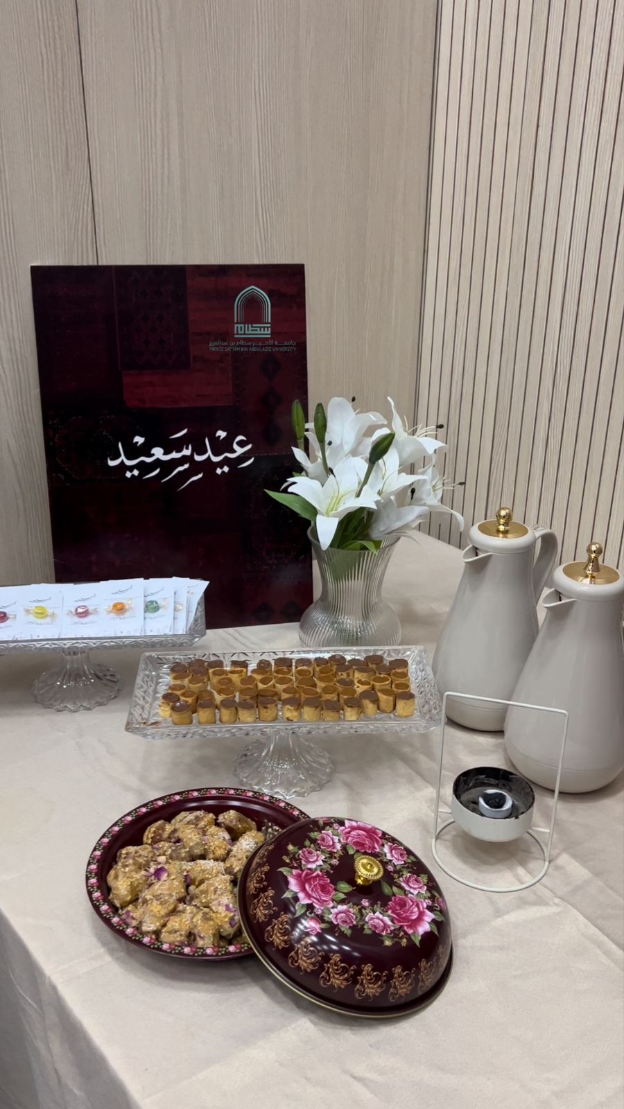 كما شمل العرض استعراضًا لأشهر أنواع الحلويات والكعك المرتبطة بعيد الفطر، مما أضفى طابعًا احتفاليًا أصيلًا على الأجواء. وتناول كذلك سنن وآداب العيد، بالإضافة إلى أبرز عبارات التهنئة المتداولة بين المسلمين.