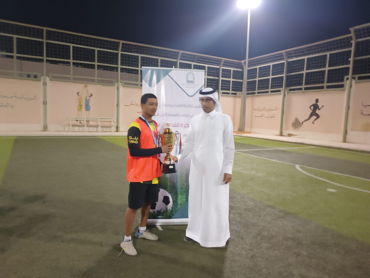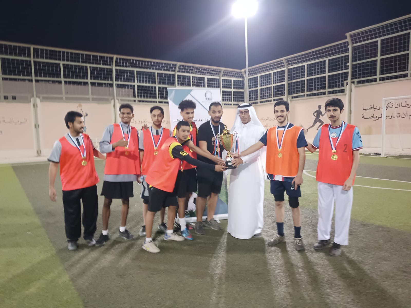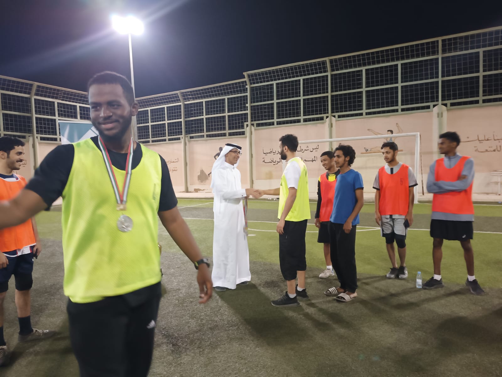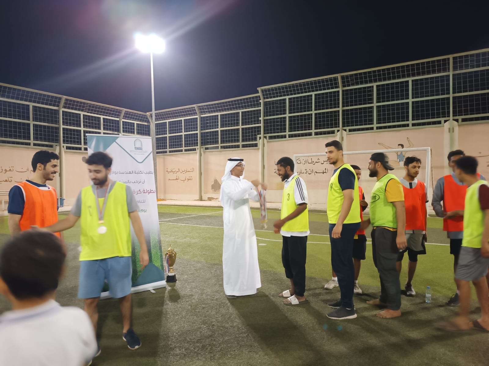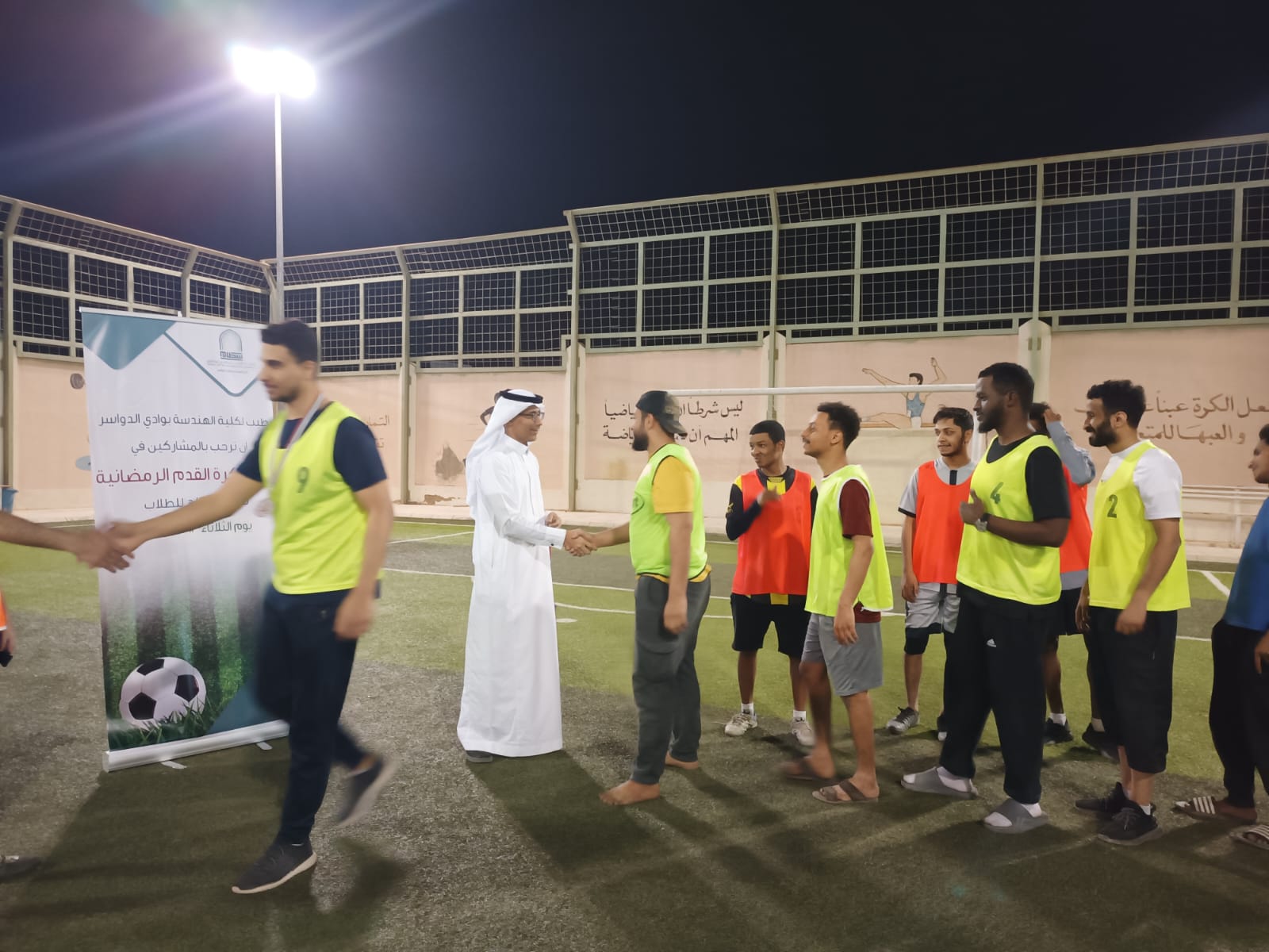ضمن الفعاليات والأنشطة التي تقيمها كُلْيَة الهندسة بوادي الدواسر أقامت وحدة الأنشطة الطلابية بطولة كرة القدم الرمضانية لطلاب الكُلْيَة في ملعب متوسطة تحفيظ القران الكريم بالخماسين يوم الثلاثاء 13/09/1444هـ، حيث شهدت البطولة مشاركة عدد 16 طالب وبحضور سعادة عميد الكُلْيَة الدكتور محمد مسعود بالعيد ال حيدر والدكتور حجازي رزق رئيس قسم الهندسة الكهربائية ومنسق النشاط الرياضي في الكُلْيَة د. وازع القادري وعدد من الطلاب.