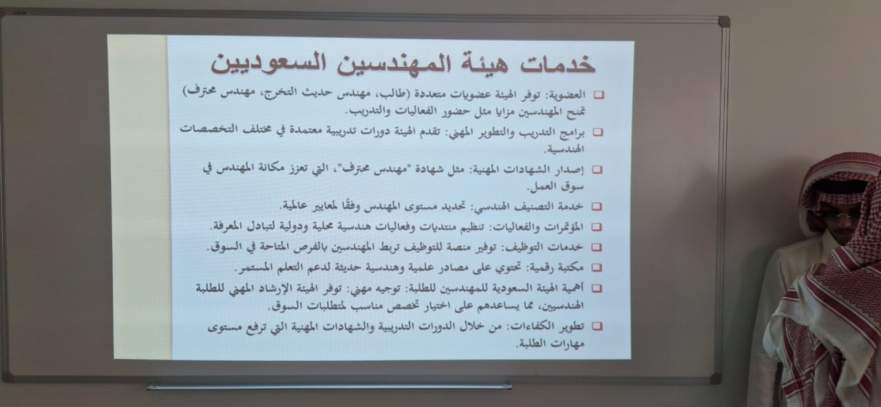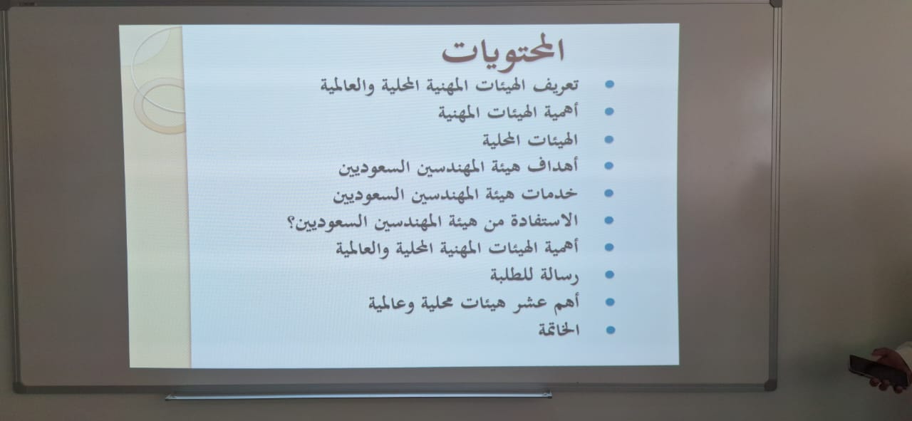 - دورة بكلية الهندسة بعنوان "التعريف بالهيئات المهنية المحلية والعالمية"