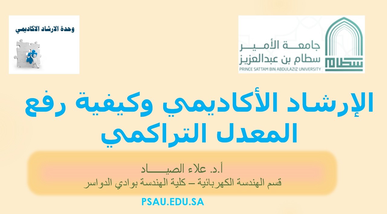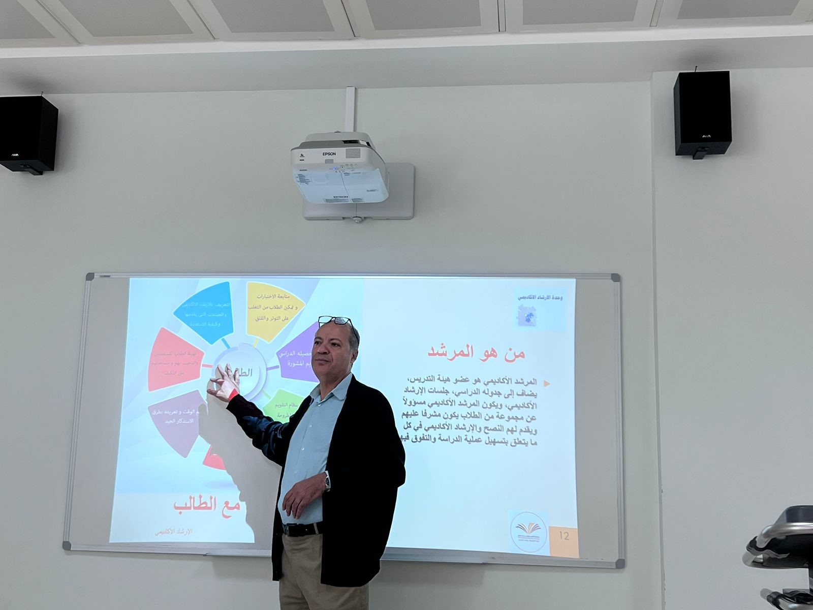 قامت لجنة الإرشاد الأكاديمي بكلية الهندسة بوادي الدواسر بعقد دورة بعنوان الإرشاد الأكاديمي وكيفية رفع المعدل الأكاديمي في مقر كلية الهندسة بوادي الدواسر وذلك يومي 16،18 من شهر رجب الحالي الموافق 9،7 من شهر فبراير 2023 وكانت الدورة موجهة إلى طلاب مقررات الذكاء الاصطناعي، الطرائق الحسابية في الهندسة الكهربائية، البرمجة بالحاسب وقد قدم الدورة سعادة الأستاذ الدكتور علاء الصياد من قسم الهندسة الكهربائية. هدفت الدورة إلى التعريف بأهمية الإرشاد الأكاديمي في دعم المسيرة الجامعية للطالب دور المرشد الأكاديمي، التعريف بمنصة الإرشاد الأكاديمي الجديدة لمتابعة أداء الطلاب في المقررات ونسبة الحضور والغياب – ضرورة تجاوب الطلاب والتفاعل الإيجابي مع نصائح المرشد الأكاديمي وأيضا التخصصات الفرعية والوظائف المختلفة داخل تخصص الهندسة الكهربائية.