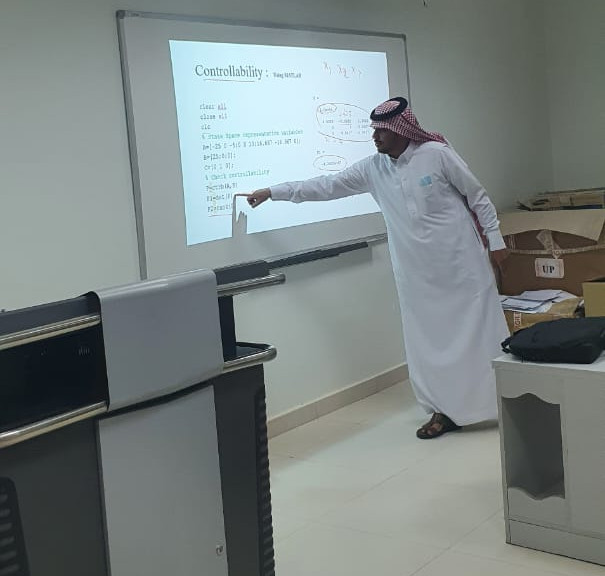 هدفت الدورة إلى تدريب الطلاب على تمثيل النظام والتأكد من قابليتة لاضافة متحكم ومراقب وتطوير كود ماتلاب للتحقق من الحل. وفي الختام تتقدم لجنة الخريجين بكلية الهندسة بوادي الدواسر بجزيل الشكرً والتقديرً لسعادة م. محمد فهد السبيعي على تقديمه هذه الدورة وندعو له بدوام التوفيق والسداد ونسأل التوفيق للجميع.