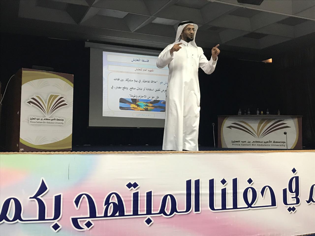 أقامت كلية الهندسة بمحافظة وادي الدواسر وبالتعاون مع وحدة التوعية الفكرية بالجامعة وفي إطار مشروع " نحو جامعة واعية 3" دورة تدريبية بعنوان ( التعايش فطرة وشريعة ) قدمها الدكتور/ حمد بن عبد الله القميزي ، أستاذ المناهج وطرق التدريس المشارك بالجامعة. بحضور وكيل الكلية للشؤون التعليمية والأكاديمية الدكتور / عبد الله بن مبارك الهجاج ، وعدد من أعضاء هيئة التدريس والطلاب وذلك بمسرح كلية الهندسة .وتطرق القميزي لمحاور الدورة ومنها التعايش مطلب فطري ، تم خلالها تحديد مفهوم التعايش وأسسه وأنواعه وآثاره على الفرد والمجتمع ، والتعايش مطلب شرعي ، وفيه تم عرض الأدلة الشرعية على مشروعية التعايش ، والتعايش بين أفراد المجتمع الواحد، وفيه تم توضيح كيف يتم التعايش بين الأفراد وأهميته في تحقيق أمن الوطن وازدهاره.الجدير بالذكر أن هذه الدورة تميزت بتفاعل الإيجابي بين المدرب والحضور البالغ عددهم (45) مشارك وتضمنت الدورة القيم والثوابت الشرعية والوطنية ، ليكون فرداً فعال في أمن الوطن واستقراره . والكفيلة بترسيخ فكر الوسطية السمحاء ، للطالب الجامعي وتحصينه ضد الأفكار والسلوكيات المنحرفة وذلك من خلال العديد من التفاعلات في الأنشطة الفكرية والعروض التدريبية والمشاركات الطلابية .وفي ختام الدورة تقدم الدكتور/ عبد الله بن مبارك الهجاج وكيل الكلية للشؤون التعليمية والأكاديمية بالشكر للدكتور حمد بن عبد الله القميزي على تكبده مشاق السفر وتواجده في رحاب كلية الهندسة بوادي الدواسر لتوعية أبنائه الطلاب , ضمن إطار هذا المشروع الفكري المبارك " نحو جامعة واعية3 " داعياً له بالتوفيق والنجاح في تحقيق الأهداف المرجوة في خلق مجتمع جامعي واعٍ قادر على مكافحة الأفكار المنحرفة ، كما قدّم له شهادة شكر وتقدير عرفاناً لجهوده المبذوله ، وأخذت بعد ذلك الصور التذكارية مع المشاركين بالدورة .