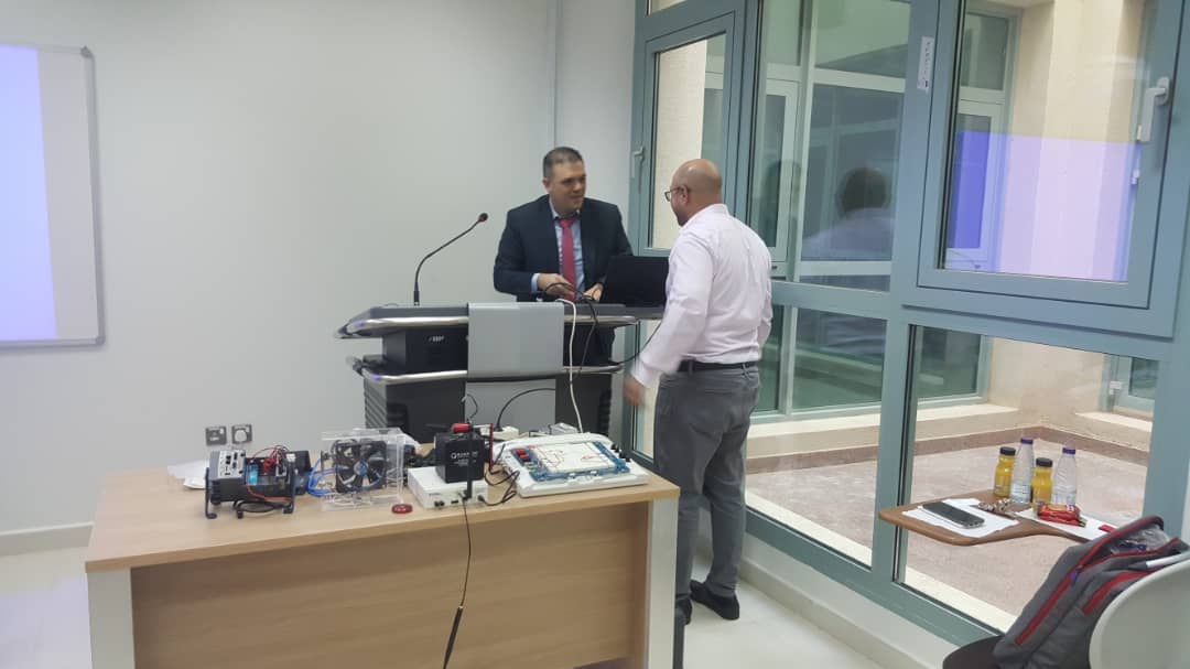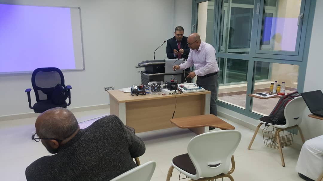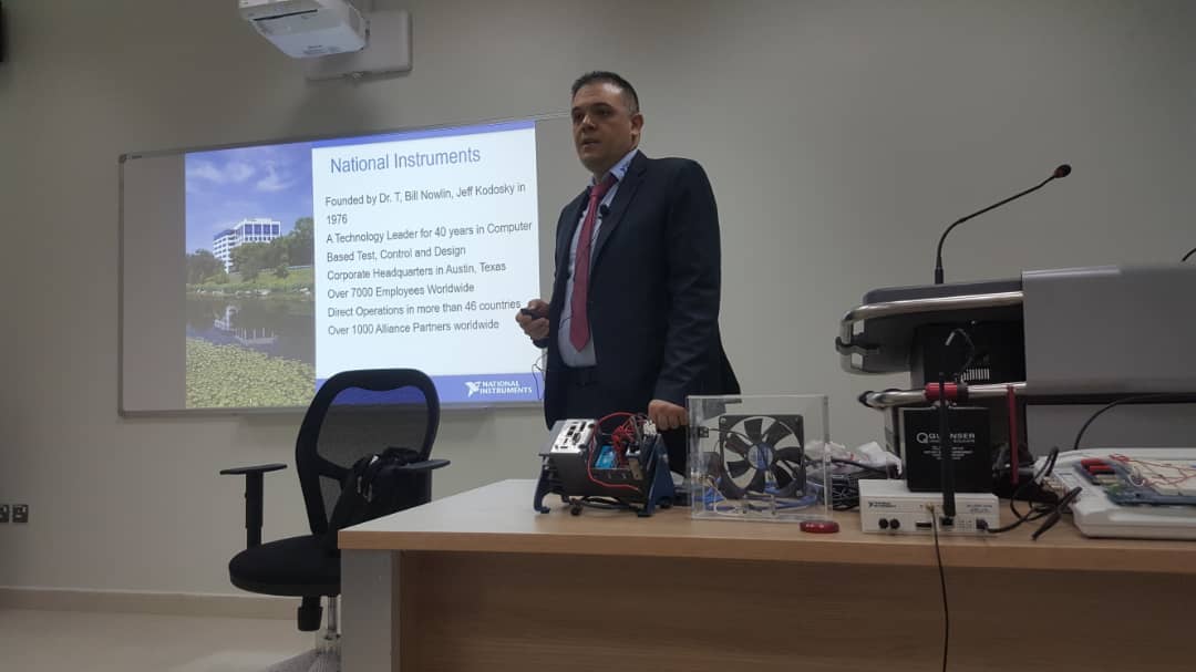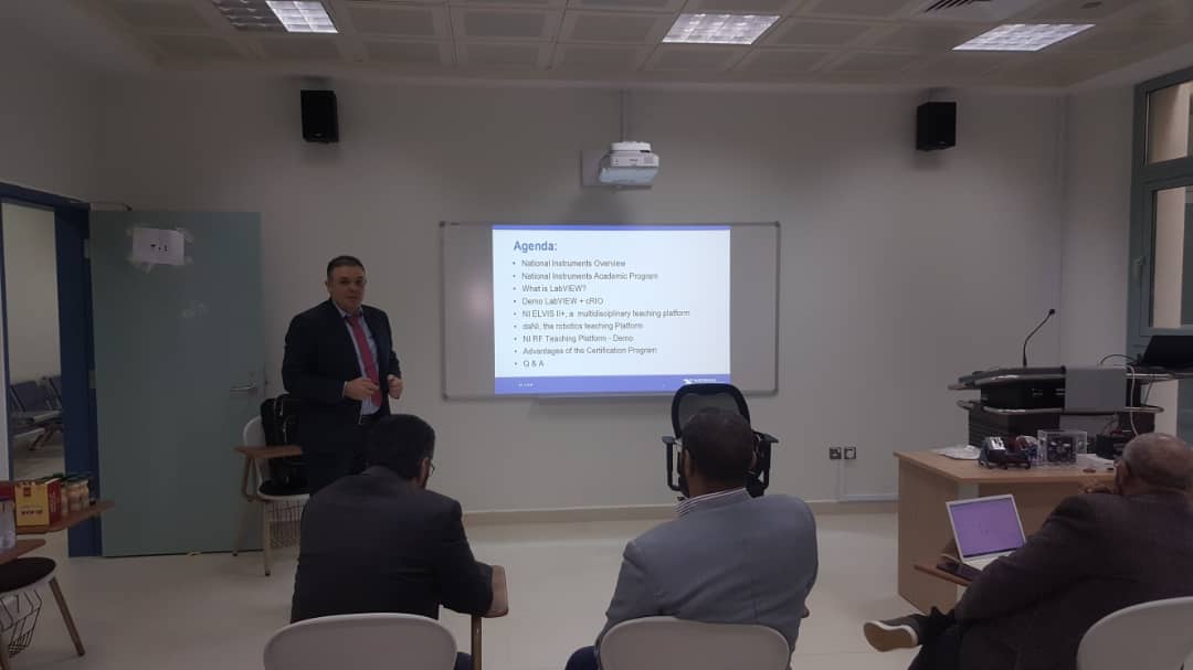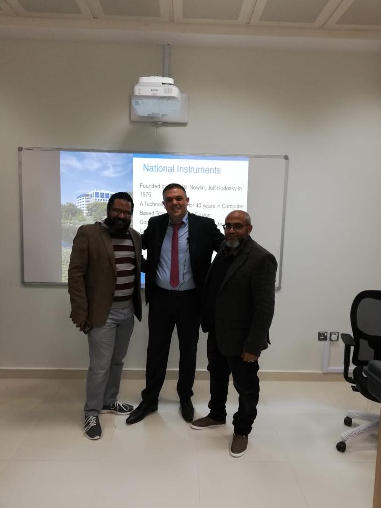 عدسة و تحرير: موفي الهذابهندسة وادي الدواسر تقيم حلقة نقاش "حول تفعيل برنامج الهندسة الميكانيكية"تماشيا مع رؤية الوطن (٢٠٣٠) والتي تتضمن زيادة أعداد المهندسين والتقنين السعوديين واستعداداً لتفعيل برنامج الهندسة الميكانيكية بكلية الهندسة بوادي الدواسر . أقام قسم الهندسة الميكانيكية ورشة عمل وحلقة نقاش عن برنامج lab view واستخداماته المختلفة في التجارب المعملية والأبحاث وذلك في يوم الاربعا ٢٣ يناير ٢٠١٩م قدم حلقة النقاش : المهندس / رالف صعب , والمهندس احمد سمير من شركة المعدات الوطنية National instrument . وفتتح المهندس / أحمد سمير , حلقة النقاش قائلاً : بناء على العرض التقديمي المقدم لجامعتكم الموقرة عن البرامج الأكاديمية والاِعتماد الأكاديمي الخاصة ب (NIA Certification center & Accreditation) سيتم تغطية النقاط الهامة الآتية لتكون محاور حلقه النقاش :* مفهوم جديد والتعلم عن طريق نهج قائم على المشروع.*التدريب العملي على الأجهزة (عند توافر الأجهزة).*تحليل البيانات و المعطيات.*الراديو المعرف برمجيا (Software Defined Radio-SDR) ورصد تحليلي حي للطيف.استخدامات البرنامج في الميكاترونيكس..وفي هذا الخضم : بدأت حلقة النقاش بالتعريف عن برنامج (LabVIEW) حيث ذكر المهندس / رالف صعب , بأنه برنامج مطور من قبل شركة National instrument يستخدم لطلبو الهندسة في جميع التخصصات الهندسية ، والحديث عن التحديات في مجال البرمجيات ومراحل تقدم التكنولوجيا إلى أن تم الوصول إلى مثل هذه التقنيات.كما تضمنت : حلقة النقاش عل شرحاً مفصلاً عن أساسيات استخدام برنامج (LabVIEW)، هيكلة البرنامج وطريقة عمله، وكيفية الوصول إلى البيانات، وقد تعاونا مديري حلقة النقاش في توضيح النقاط الهامة في تطبيق برنامج(LabVIEW) للمستهدفين .حضر حلقة النقاش : نخبة من أعضاء هيئة التدريس مشرفو الأقسام ومسئولو البرامج الأكاديمية والوحدات في كلية الهندسة وبعض الطلاب .وعلى هامش حلقة النقاش : دار الحديث عن جانب مهم من جوانب إقامة هذا السيمنار الذي من أهم أهدافه معرفة آخر التقنيات المتاحة لدى شركة National instrument لشراء المعامل والتجهيزات المتطورة ضمن إطار خطة تفعيل برنامج الهندسة الميكانيكية بكلية الهندسة بوادي الدواسر . وشخَص المشاركون الوضع الحالي للكلية من خلال مناقشة نقاط جوهرية تدعم تطلعات كلية الهندسة التي تساهم في وضع خطة إستراتيجية للمرحلة القادمة.وتعليقاً على حلقة النقاش : أكد الدكتور / عبد الله الهجاج , وكيل كلية الهندسة للشؤون الأكاديمية والتعليمية على أهمية هذا البرنامج للطلاب في كلية الهندسة حيث يساعدهم في مساقاتهم الدراسية ومشاريع تخرجهم، وأضاف أن الكلية تسعى إلى التعاون الدائم مع شركة National instrument لإقامة حلقات نقاش لتعرف على أهم البرامج والتعامل معها عن كثب .مؤكداً : على وجود خطة مستقبلية لتنظيم ورش عمل أخرى جديدة ومختلفة مما توفر للطلاب وأعضاء هيئة التدريس في كلية الهندسة فرصة لمعرفة المزيد عن التكنولوجيات الحديثة والأدوات المتطورة المستخدمة .الجدير ذكره : أنه تم الاتفاق على ترتيب حلقة دراسية أخرى؛على أن تضم العديد من العناوين و البرامج التعليمية الشيقة ؛ على سبيل المثال :*بيانات الوقت الفعلي ونظام السكادا لقياس درجة الحرارة.*الأجهزة و المعدات الاِفتراضية و الاختبار الآلي.*محركات التيار المستمر،التحكم بالسرعة،البندول المعكوس والتوازن الذاتي .في نهاية الورشة تقدم الدكتور / عبد الله الهجاج , وأعضاء هيئة التدريس بالشكر الجزيل للمهندس / رالف صعب , والمهندس / أحمد سمير , على تكبدهم عناء السفر وعلى ما قدموه من معلومات عن برنامج lab view وإعطاء المشاركين في السمينار فكرة عن آخر التقنيات المتوفرة لدى شركة National instrument والمشاركة في حلقة النقاش بالرأي عن الأجهزة المطورة والتي تخدم اتخاذ القرار المناسب في خطة توفير تجهيزات برنامج الهندسة الميكانيكية .