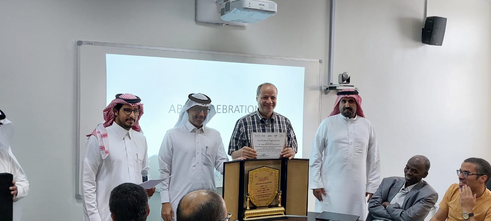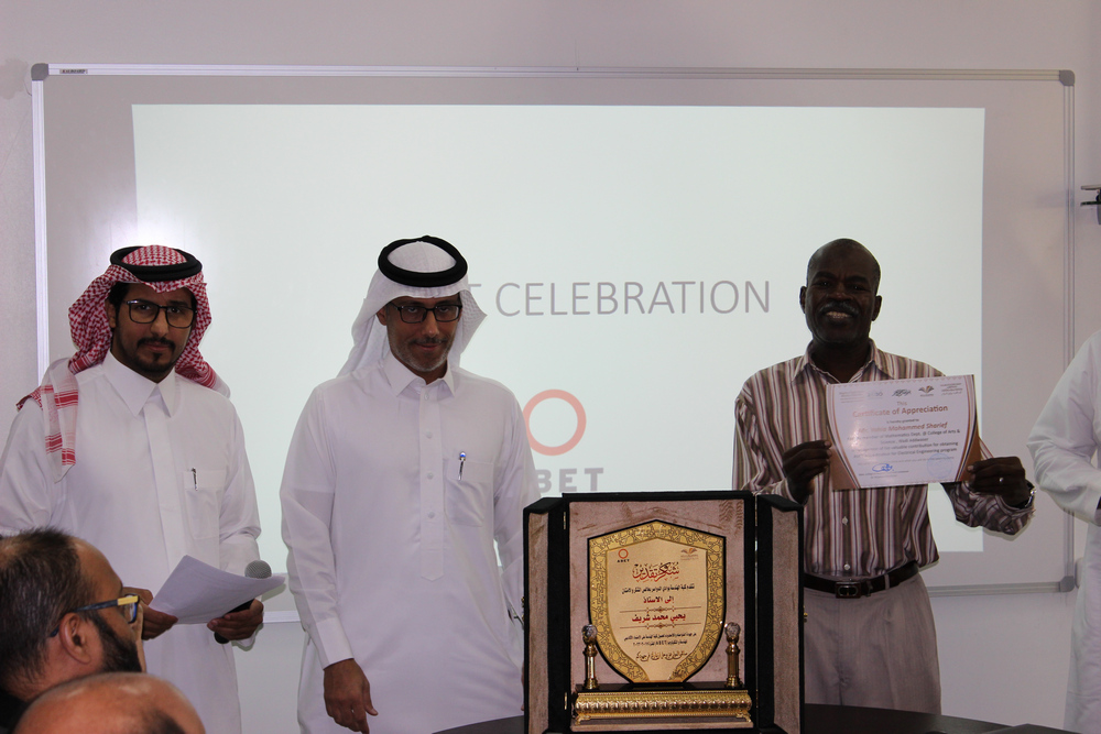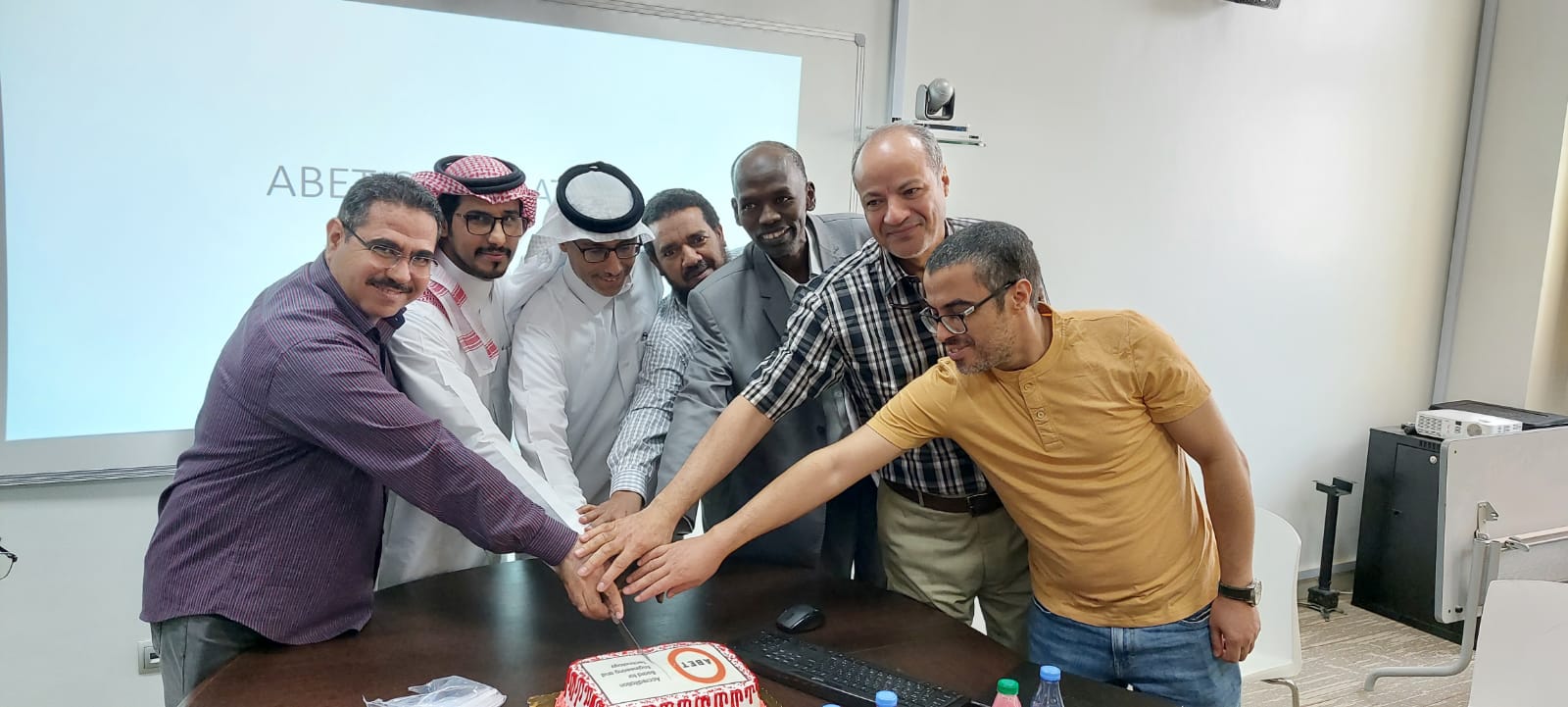 بحضور عميد كلية الهندسة د/ محمد مسعود آل حيدر و وكيل الكلية للتطوير و الجودة د/ سعود الهجاج ووكيل الكلية الشؤون التعليمية والأكاديمية د/ عبيد مرثع الدوسري ومشرف قسم الهندسة الكهربائية د/ حجازي رزق وبتواجد الطاقم التدريسي والإداري احتفلت كلية الهندسة بوادي الدواسر بحصولها على الاعتماد الدولي من هيئة الاعتماد الأمريكية للهندسة والتقنية (ABET).