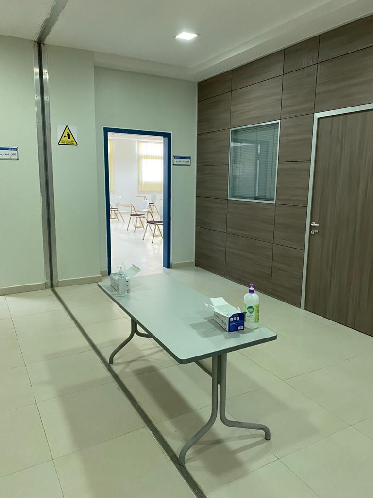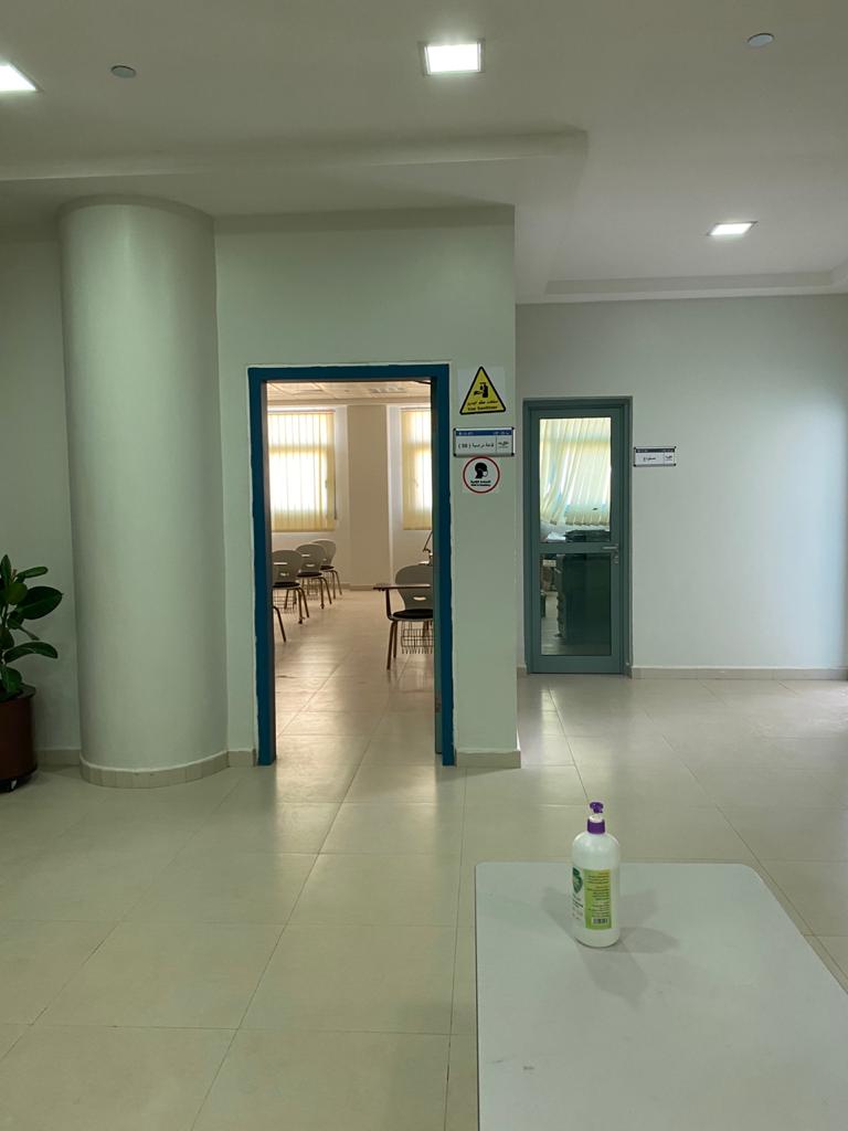 وقد أكد سعادة عميد الكلية الدكتور محمد الحيدر بأنه تم ولله الحمد عمل الخطة اللازمة لاستقبال الطلاب وتم الاستعداد والتجهيز لذلك مبكراً بدءاً من تحضير جدول الاختبارات النهائية ومراعاة أعداد الطلاب لكل فترة ولكل قاعة بالإضافة إلى تنظيم المداخل والمخارج اللازمة لضمان عدم تكدس الطلاب وازدحامهم ومروراً يوضع الخطة اللازمة مع شركة التشغيل والصيانة لتنظيف وتعقيم القاعات بشكل يومي مع توفير المعقمات والكمامات بشكل مستمر وانتهاءًا بتوزيع وتحديد الأعمال والمهام المناطة بجميع منسوبي الكلية من أعضاء هيئة التدريس وإداريين وكذلك منسوبي الأمن والسلامة .