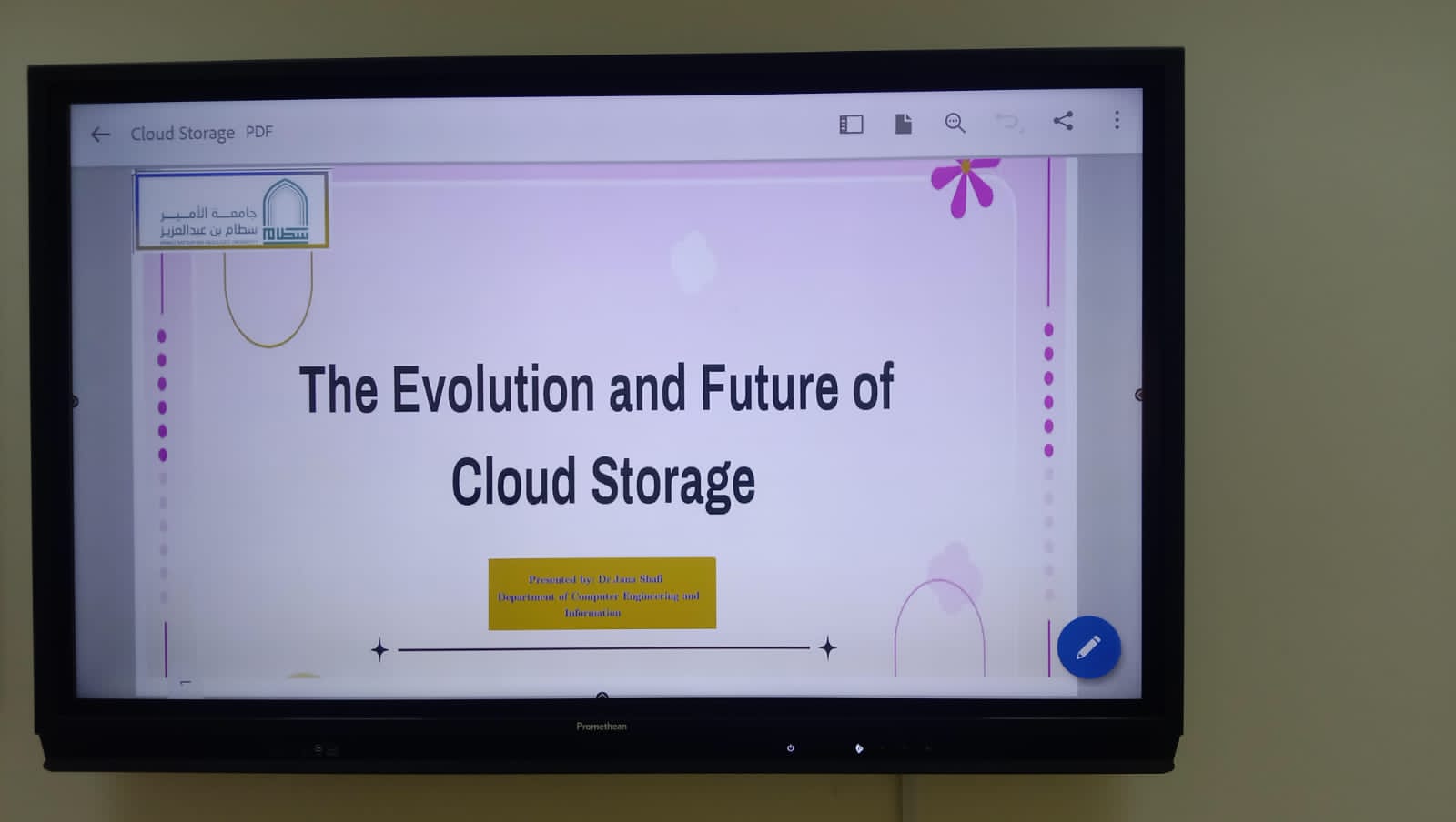 نظّم قسم هندسة الحاسب والمعلومات بكلية الهندسة بوادي الدواسر يوم الاثنين الموافق 7 أبريل 2025 ورشة عمل بعنوان "التخزين في البيئات السحابية"، وذلك ضمن مبادرات خدمة المجتمع، وقد قدمت الورشة سعادة الدكتورة جنا شفي، عضو هيئة التدريس بالقسم. جاءت الورشة بهدف رفع مستوى الوعي لدى الطالبات وأفراد المجتمع الجامعي بأهمية تقنيات التخزين السحابي ودورها المحوري في البنية التحتية الرقمية الحديثة، إلى جانب استعراض تطبيقاتها العملية في المجالات الأكاديمية والصناعية.