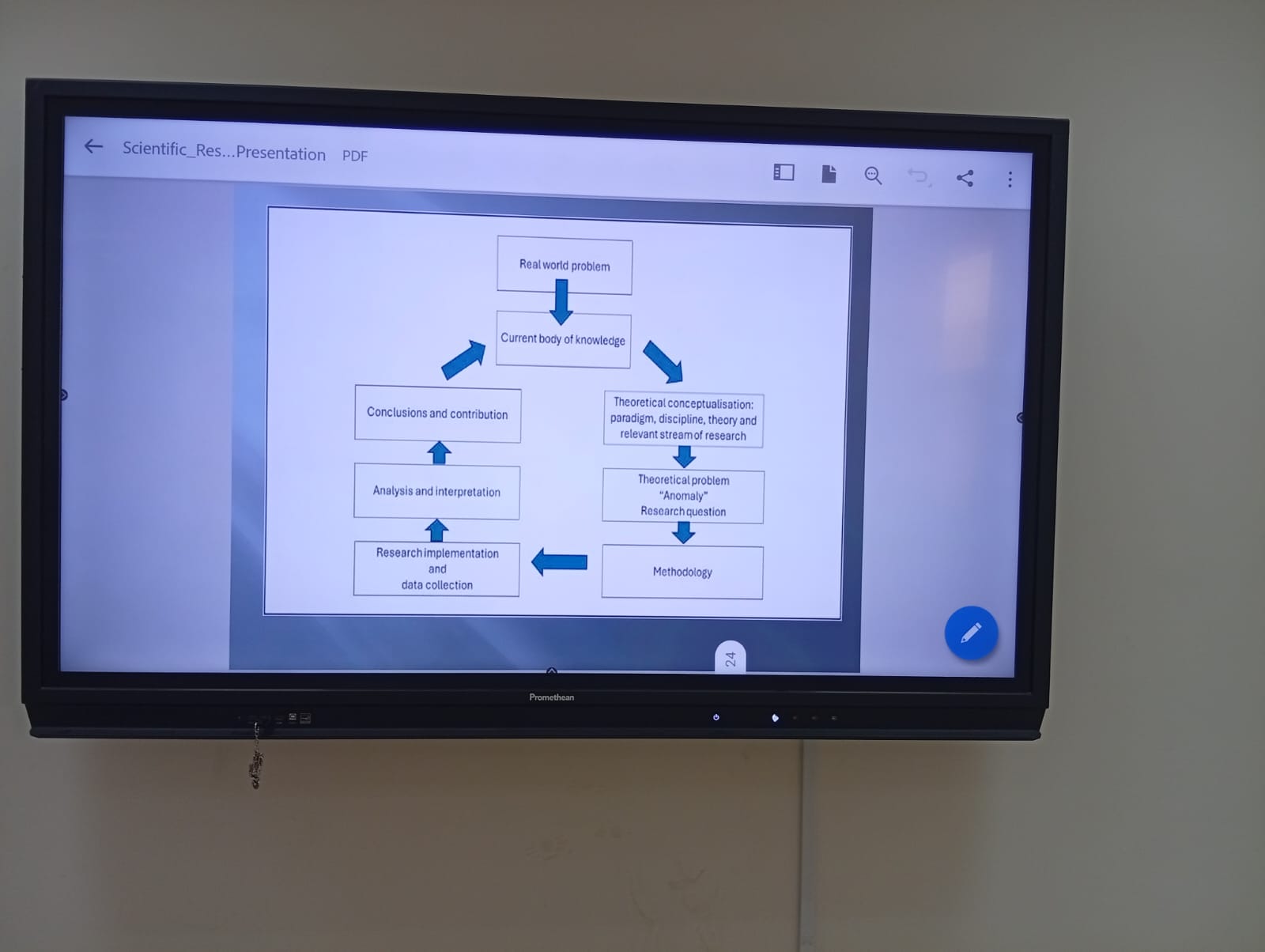 نظمت لجنة البحث العلمي بشطر الطالبات في كلية الهندسة بوادي الدواسر ورشة عمل بعنوان "مهارات البحث العلمي" يوم الاثنين الموافق 14 أبريل 2025، وقد قدمت الورشة الدكتورة رحيمة عظمة الله بحضور عدد من طالبات الكلية وأعضاء هيئة التدريس.