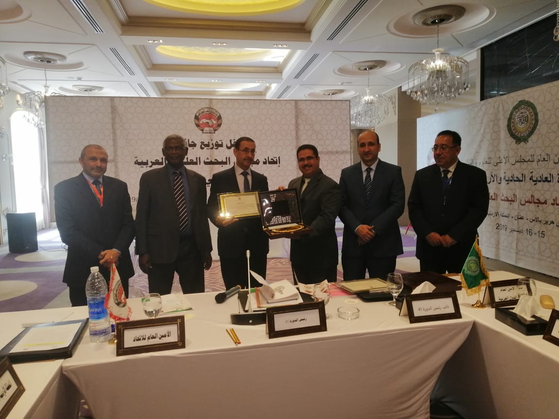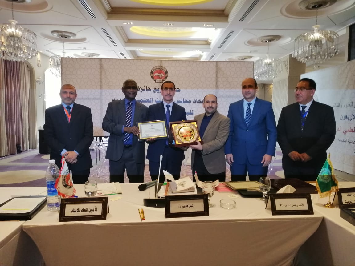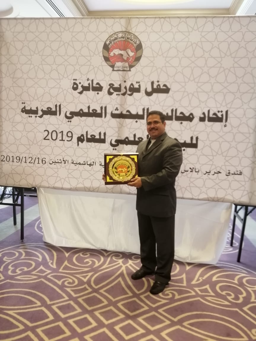 تحرير: موفي الهذابفي إنجاز رفيع المستوى كلية الهندسة بوادي الدواسر تحتفل بالأساتذة الفائزين بجائزة اتحاد مجالس البحث العلمي العربية في مجال الذكاء الإصطناعي للعام 2019م .وجاءت هذه الفرحة العارمة والاحتفالية بعدما أعتمد معالي الأمين العام لأتحاد مجالس البحث العلمي العربية الأستاذ الدكتور / مبارك محمد علي مجذوب، " وزير التعليم العالي والبحث العلمي السابق بجمهورية السودان " ؛ نتيجة لجان التحكيم للأعمال المقدمة للمنافسة على الجائزة في دورتها : ( 41 )وفي هذا المضمار العلمي الكبير كان لجامعة الأمير سطام بن عبد العزيز الحظ الأوفر من هذه الجائزة حيث فاز بمراكزها المتقدمة اثنان من منسوبيها بجائزة الباحثين الشباب في مجال الذكاء الإصطناعي للعام 2019م ضمن خمسة فائزين على مستوى الوطن العربي ،وهما :الدكتور/ أحمد متولى ناصف , الأستاذ المساعد بقسم الهندسة الكهربائية بكلية الهندسة بوادي الدواسر .  والدكتور/ حجازي رزق أحمد , الأستاذ المساعد بقسم الهندسة الكهربائية بكلية الهندسة بوادي الدواسر .وتضمنت الجائزة لهذا العام 2019م ، طبقاً لإستراتيجية عمل الإتحاد ووفق خطته السنوية و أولويات البحث المعتمدة به، مجالات وهي :1-جائزة أفضل الكتب المؤلفة في مجال الدراسات الاجتماعية في العالم العربي خلال الأعوام : ( ٢٠١٧  ٢٠١٨والعام ٢٠١٩ م )2-جائزة التأليف والترجمة لأفضل الكتب المؤلفة أو المترجمة خلال الأعوام : ( ٢٠١٧ ٢٠١٨ والعام ٢٠١٩م ) حول الأنظمة التعليمية في الدول الاسكندنافية.3-جائزة الباحثين الشباب في مجال الذكاء الاصطناعي.4-جائزة الابتكار خلال الأعوام:  ( ٢٠١٧ ٢٠١٨ والعام ٢٠١٩ م )الجدير بالذكر : أن أتحاد مجالس البحث العلمي العربية يعتبر .. منظمة عربية ذات صفة دبلوماسية تتخذ من الخرطوم مقراً لها. أنشئ بقرار من اجتماع وزراء التعليم العالي والبحث العلمي في الدول العربية في العام ١٩٧٦م  . ويضم في عضويته الهيئات والمؤسسات والتي تُعنى بالبحث العلمي في الأقطار العربية. وهو منظمة تعنى بتنسيق العمل العربي المشترك في مجال البحث العلمي وتبادل الخبرات بين هيئات ومراكز البحث العلمي العربية .وبرعاية كريمة من معالي الأستاذ الدكتور / خالد الشريدة , الأمين العام للاتحاد استضاف المجلس الأعلى للعلوم والتكنولوجيا صباح الاثنين 16/12/2019م في عمان بالمملكة الأردنية الهاشمية، اجتماعات الدورة العادية الـ 41 لاتحاد مجالس البحث العلمي العربية وحفل توزيع الجوائز على الفائزون، برئاسة الدكتور محمد المجالي مندوب الأردن ، رئيس الدورة الحالية، و بمشاركة سفراء و مندوبين عن الدول عربية، يمثلون مؤسسات البحث العلمي في الدول العربية .وقد حضر الاجتماع السفير / محمد العتيق , القائم بأعمال السفير السعودي بالأردن والدكتور / عمرو عزت سلامة , الأمين العام لاتحاد الجامعات العربية ووزير التعليم العالي الأسبق بجمهورية مصر العربية والسفير / شريف كامل سفير مصر لدى الأردن كما حضر السفير وليد عثمان مندوباً عن معالي الدكتور / أحمد أبو الغيط , الأمين العام لجامعة الدول العربية .وخلال فعاليات الحفل قام الأساتذة المذكورين ضمن الخمسة فائزين على مستوى الوطن العربي ،  بعرض مختصر عن البحوث الفائزة بالجائزة والتي أوضحوا من خلاله أهمية الذكاء الإصطناعى في التطبيقات الهندسية وذلك لقدرته على محاكاة الأنظمة المعقدة وتعظيم الاستفادة منها وخصوصا مجالات الطاقة الجديدة والمتجددة .وعلى الهامش نقل الأساتذة مشاعرهم الجلية وشكرهم الجزيل لإدارة جامعة الأمير سطام بن عبدالعزيز  ولعمادة كلية الهندسة ممثله في عميدها المكلف الدكتور /محمد مسعود الحيدر , على حرصهم الشديد في حضور حفل التكريم ومساندتهم بتوفير الدعم اللازم  في هذا الإنجاز الضخم وتهيئة والمناخ المناسب لإجراء البحوث العلمية وذلك من خلال تمويل المشروعات البحث وصرف حوافز  ماديه للباحثين عند نشر بحوثهم في مجلات دوليه ذات تصنيف عالمي .حيث قال الدكتور / أحمد ناصف : أنه لمن دواعي سروري بهذه المنا