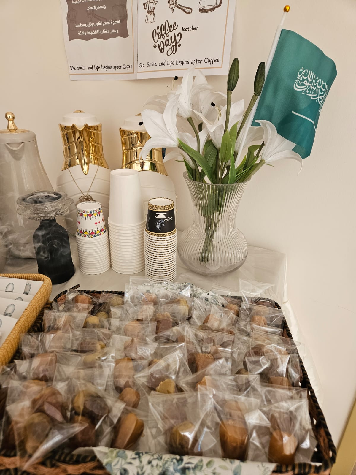 أُقيم الاحتفال يوم الخميس 2/10/2025م تحت إشراف د. نجلاء السيد منسقة الأنشطة الطلابية بالكلية، وشهد حضورًا وتفاعلًا من الطالبات وأعضاء هيئة التدريس، حيث تم تقديم القهوة السعودية لمنسوبات الكلية وطالباتها ضمن أجواء احتفالية تعبّر عن هذا الموروث العريق.
