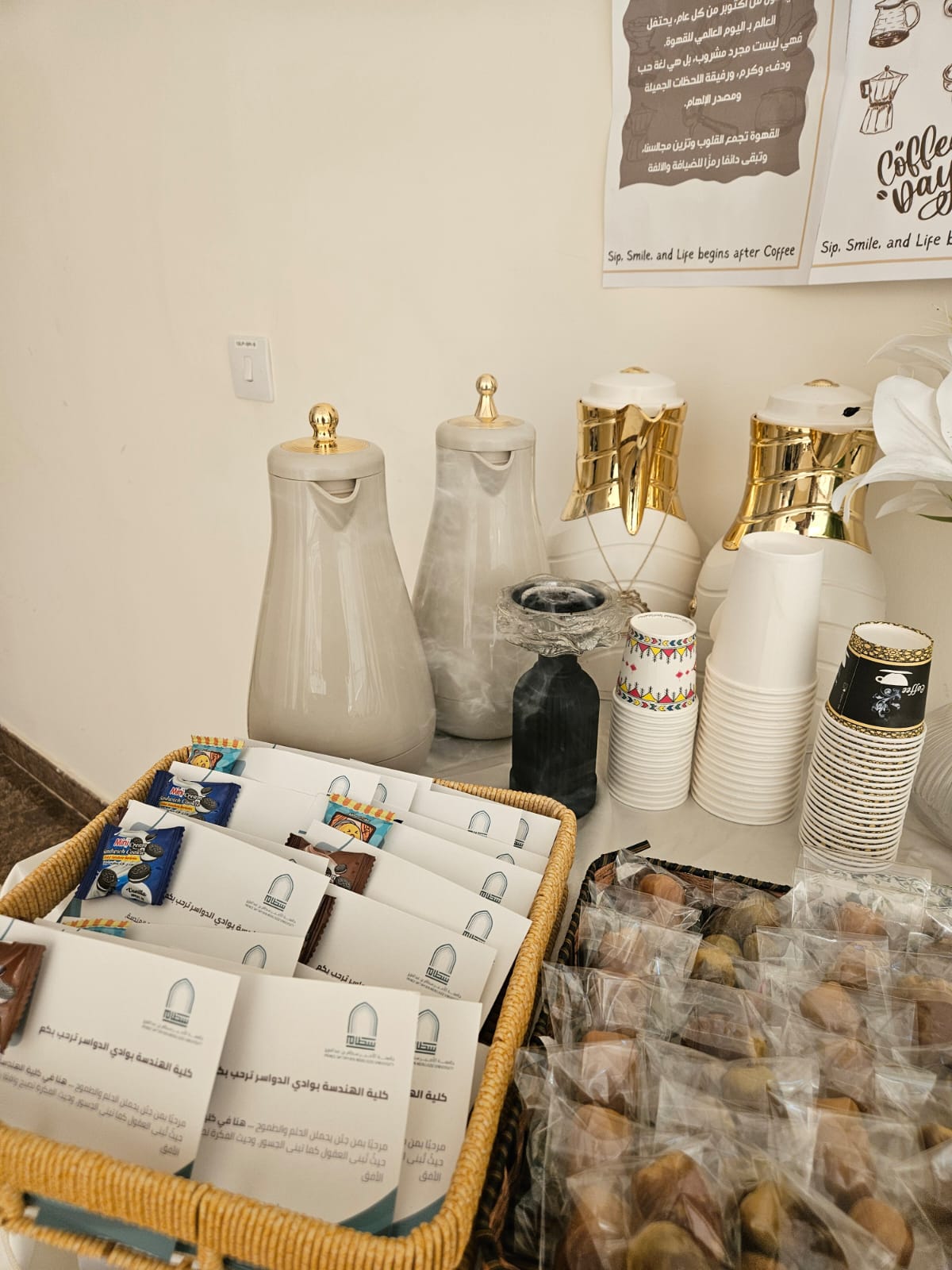 نظّمت وحدة العمل الطلابي بكلية الهندسة بوادي الدواسر – شطر الطالبات – احتفالية بمناسبة يوم القهوة العالمي، في أجواء تفاعلية حافلة جسّدت مكانة هذا المشروب العالمي الذي يجمع بين ثقافات الشعوب المختلفة.