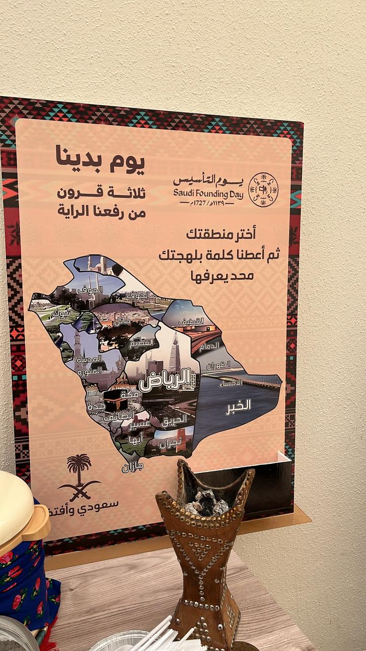 تضمّنت الفعالية معرضًا تراثيًا متنوعًا، حيث تم عرض أدوات شعبية، وصور تاريخية، وكتب توثق الإرث الثقافي للمملكة، إلى جانب أركان مخصصة للمأكولات الشعبية التي تعكس تنوع المناطق السعودية. كما تميز الحفل بمسابقة لاختيار أفضل رسمة معبّرة عن يوم التأسيس، وارتدت العديد من الطالبات الملابس التراثية التي تمثل مناطق المملكة المختلفة، مما أضفى أجواءً احتفالية أصيلة على الفعالية.