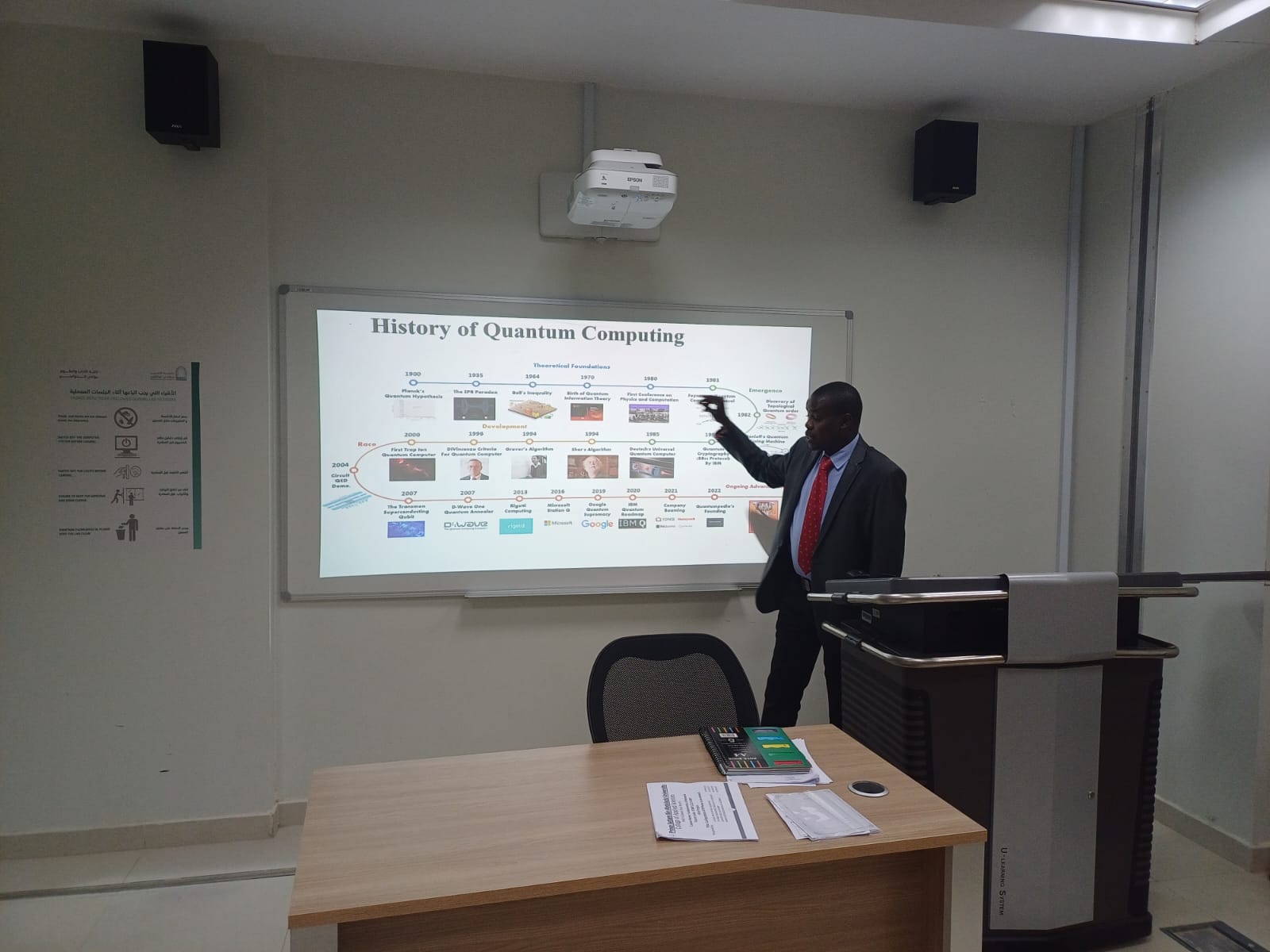وقدّم الدورة أ. عمر صالح داؤد عمر من قسم هندسة الحاسب والمعلومات، حيث تناول خلالها المفاهيم الأساسية للحوسبة الكمومية، وأهم تطبيقاتها الحالية، إضافة إلى استعراض الاتجاهات المستقبلية لهذه التقنية المتقدمة ودورها المتوقع في تطوير مجالات الهندسة وتقنية المعلومات، بما يواكب متطلبات سوق العمل.