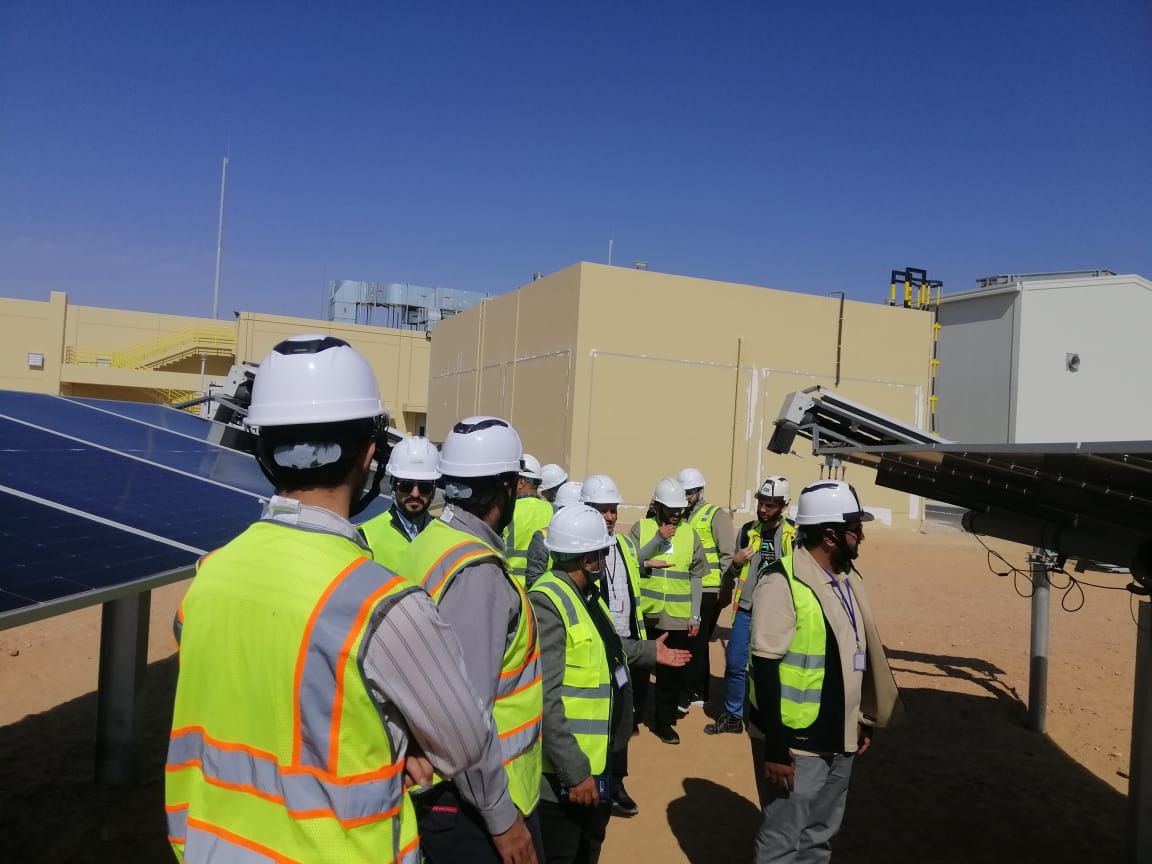 كما قدّم المهندس إبراهيم سعيد آل مطلقة، مدير الأمن الصناعي بمحطة نور الوادي للطاقة المتجددة، عرضاً تقديمياً تناول فيه إجراءات الوقاية والسلامة المهنية المعمول بها داخل المحطة، مؤكداً على أهمية الالتزام بتعليمات السلامة أثناء الزيارات الميدانية.
