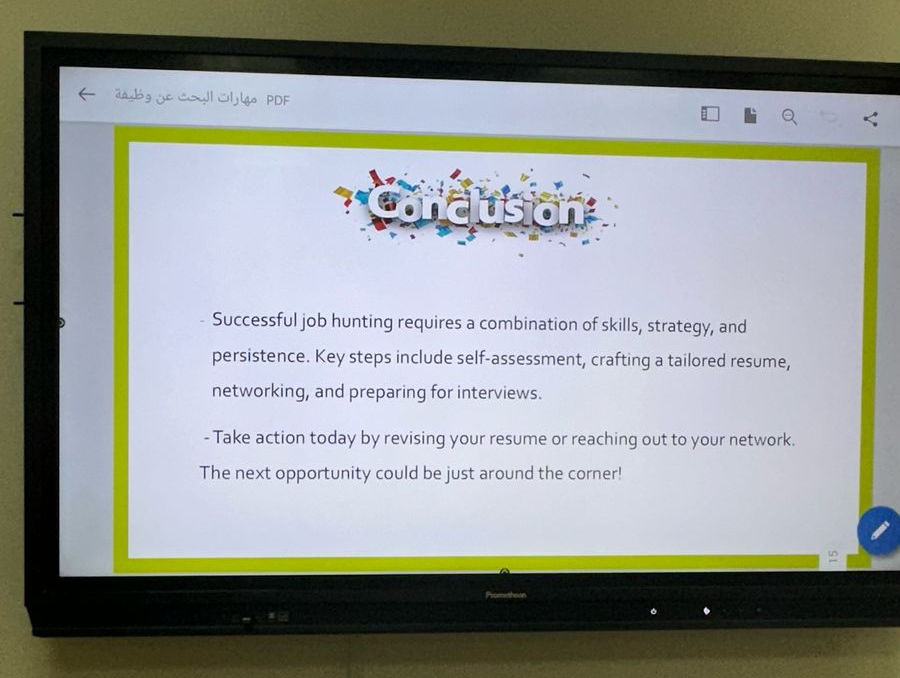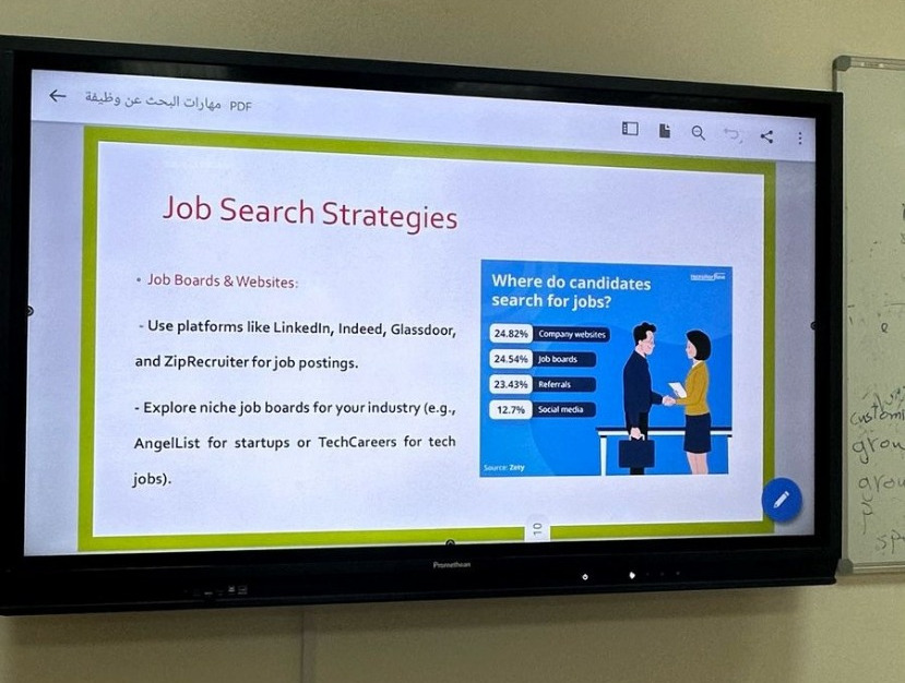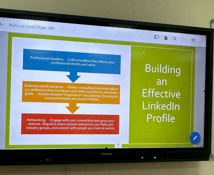في إطار جهودها لدعم الخريجات وتعزيز جاهزيتهن لسوق العمل، نظّمت وحدة الأنشطة الطلابية بالتعاون مع وحدة الخريجات بكلية الهندسة – شطر الطالبات في وادي الدواسر، محاضرة تدريبية بعنوان "مهارات البحث عن وظيفة"، وذلك يوم الأحد 9 فبراير 2025، من الساعة 12:00 ظهرًا حتى 1:00 مساءً.