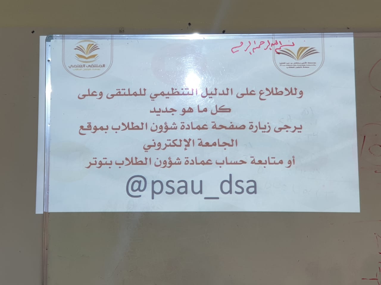 في اطار استعداد كلية الهندسة بوادي الدواسر للاشتراك في الملتقي الطلابي العلمي الثالث علي مستوي الجامعة، انطلقت فاعليات اللقاءات التعريفية بالملتقي العلمي داخل القاعات التدريسية بالكلية و ذلك لحث الطلاب على المشاركة بالملتقى و الاجابة عن استفساراتهم نحو محاور الفاعلية و كيفية الاشتراك بها، هذا قد ارسلت الامانه العامة للملتقي العلمي الثالث بالجامعة عرضا تقديمياً لكافة منسقي الملتقي من اعضاء هيئة التدريس بمختلف كليات الجامعة و فروعها ملخصا به الرؤية و الرسالة و الاهداف و المحاور الخاصة بالملتقي و من ثم قام دكتور زياد الحلواني منسق عام الملتقي وتوجيها من السيد عميد الكلية الدكتور مجاهد ال ضيف الله و السيد الدكتور وكيل الكلية للشئون الأكاديمية د. عبد الله الهجاج، قاموا بنشر العرض و ارساله للسادة اعضاء هيئة التدريس بالكلية للمساهمه في العرض التعريفي بالملتقي داخل القاعات التدريسية و قد لقي العرض استجابة سريعة من السادة اعضاء هيئة التدريس حرصا منهم علي تحفيز الطلاب للاشتراك في الفاعلية المرتقبة و ايضا لاقت الفاعلية تجاوبا كبيرا من الطلاب الذين ابدوا استعدادا كبيرا للمشاركة.