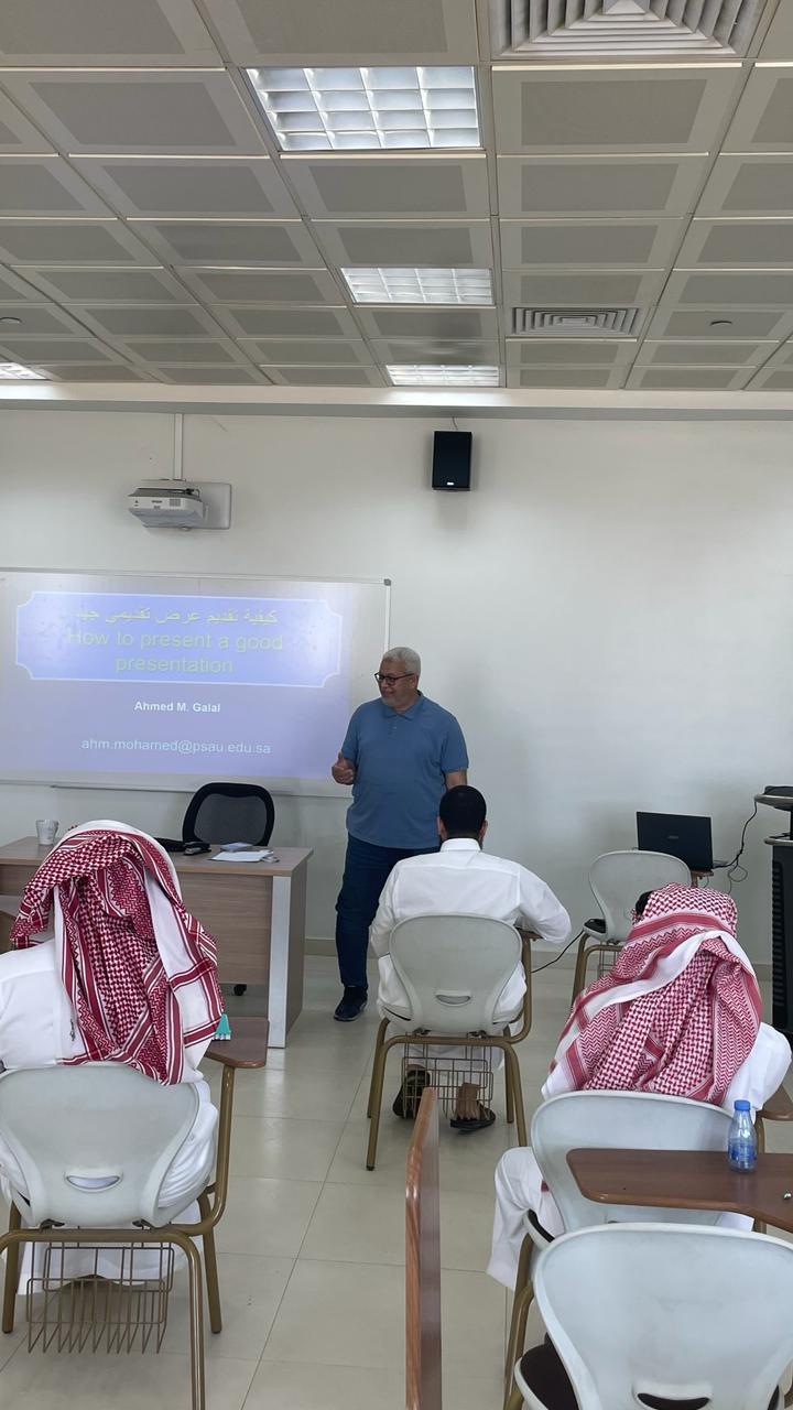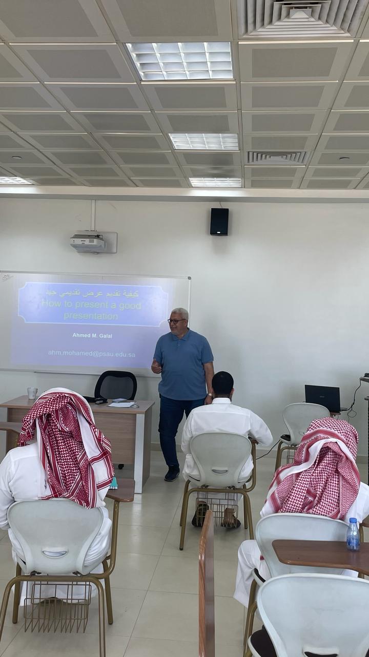 أقامت وحدة الأنشطة الطلابية بكلية الهندسة بوادي الدواسر محاضرة بعنوان "كيفية تقديم عرض تقديمي جيد"، وقدم الدورة سعادة الدكتور أحمد جلال، الأستاذ المشارك بقسم الهندسة الميكانيكية وذلك يوم الثلاثاء الموافق 28 / 10 / 1445هـ - 2024 / 5 / 7 م، وقد حضر المحاضرة تسعة طلاب.