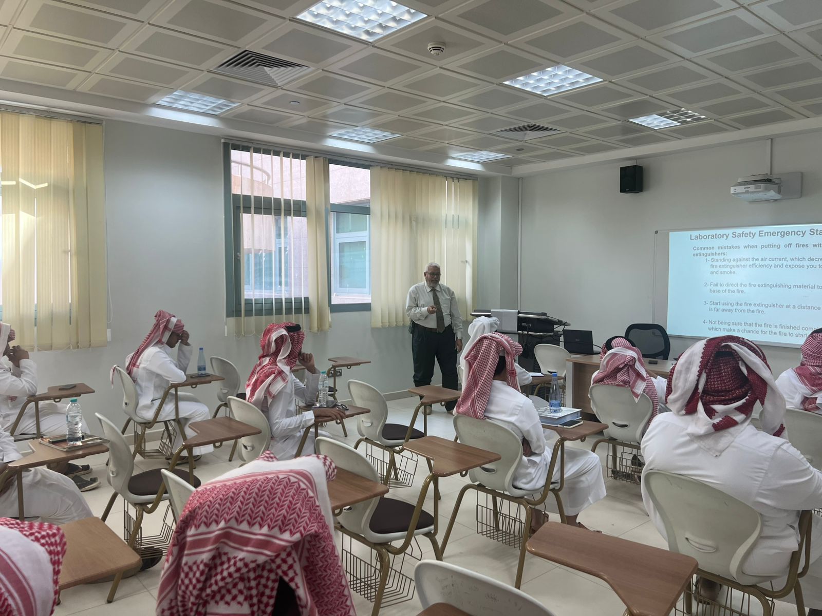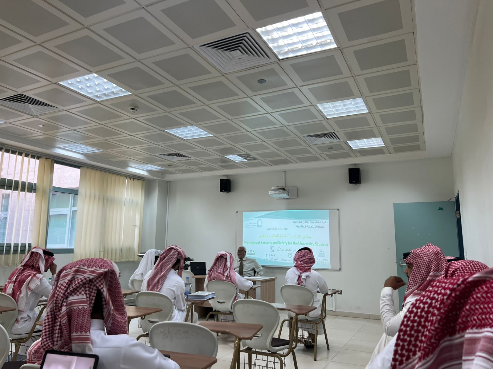 أقامت وحدة الأنشطة الطلابية بكلية الهندسة بوادي الدواسر محاضرة بعنوان "مباديء الامن والسلامة للطالب الجامعي"، وقدم الدورة سعادة الدكتور أحمد جلال، الأستاذ المشارك بقسم الهندسة الميكانيكية وذلك يوم الثلاثاء الموافق 19 / 4 / 1466هـ - 2024 / 10 / 22 م ، وقد حضر المحاضرة واحد وعشرون طالبا.