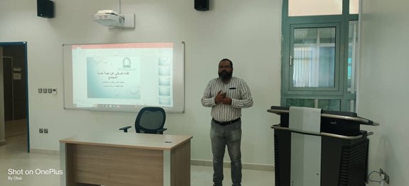 قدم المحاضرة الدكتور اُبي يونس طه عضو اللجنة. تطرق الدكتور اُبي خلال المحاضرة الي تعريف الطلاب برسالة و رؤية اللجنة, مهام اللجنة, خطة عمل االجنة للعام الدراسي 1455, كما قدم بعض الامثلة عن النشاطات السابقة للجنة.