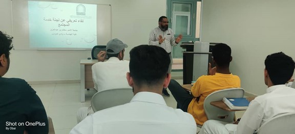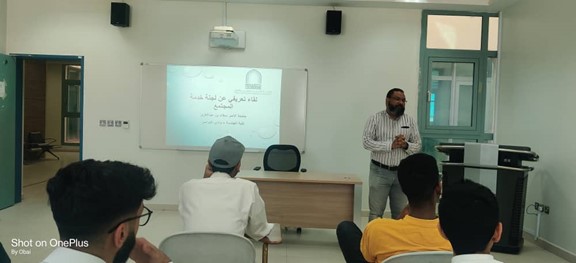 نظمت كلية الهندسة بوادي الدواسر متمثلة في لجنة خدمة المجتمع محاضرة تعريفية للطلاب المستجدين لتعريفهم علي لجنة خدمة المجتمع بالكلية و نشاطاتها و ذلك في يوم الاربعاء الموافق 26/10/2023.