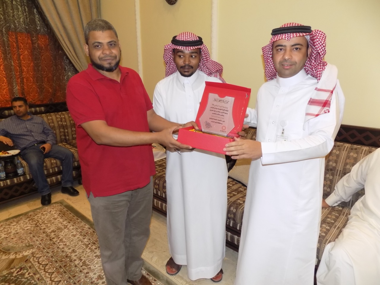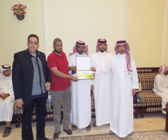 وقدم الأستاذ سعد الغلفيص في ختام هذا الجزء من الزيارة إهداء درع الكلية إلى إدارة الدار تقديراً للدور البارز الذي يؤدونه في المجتمع .