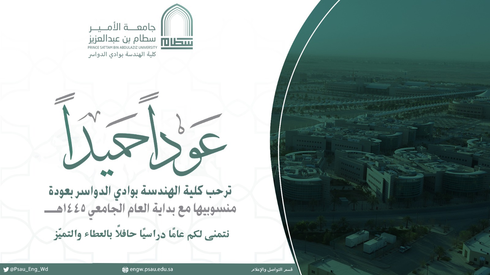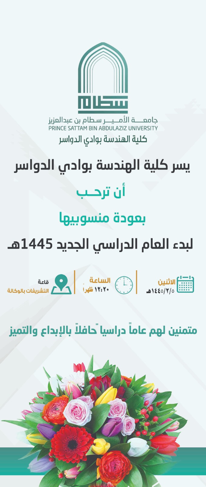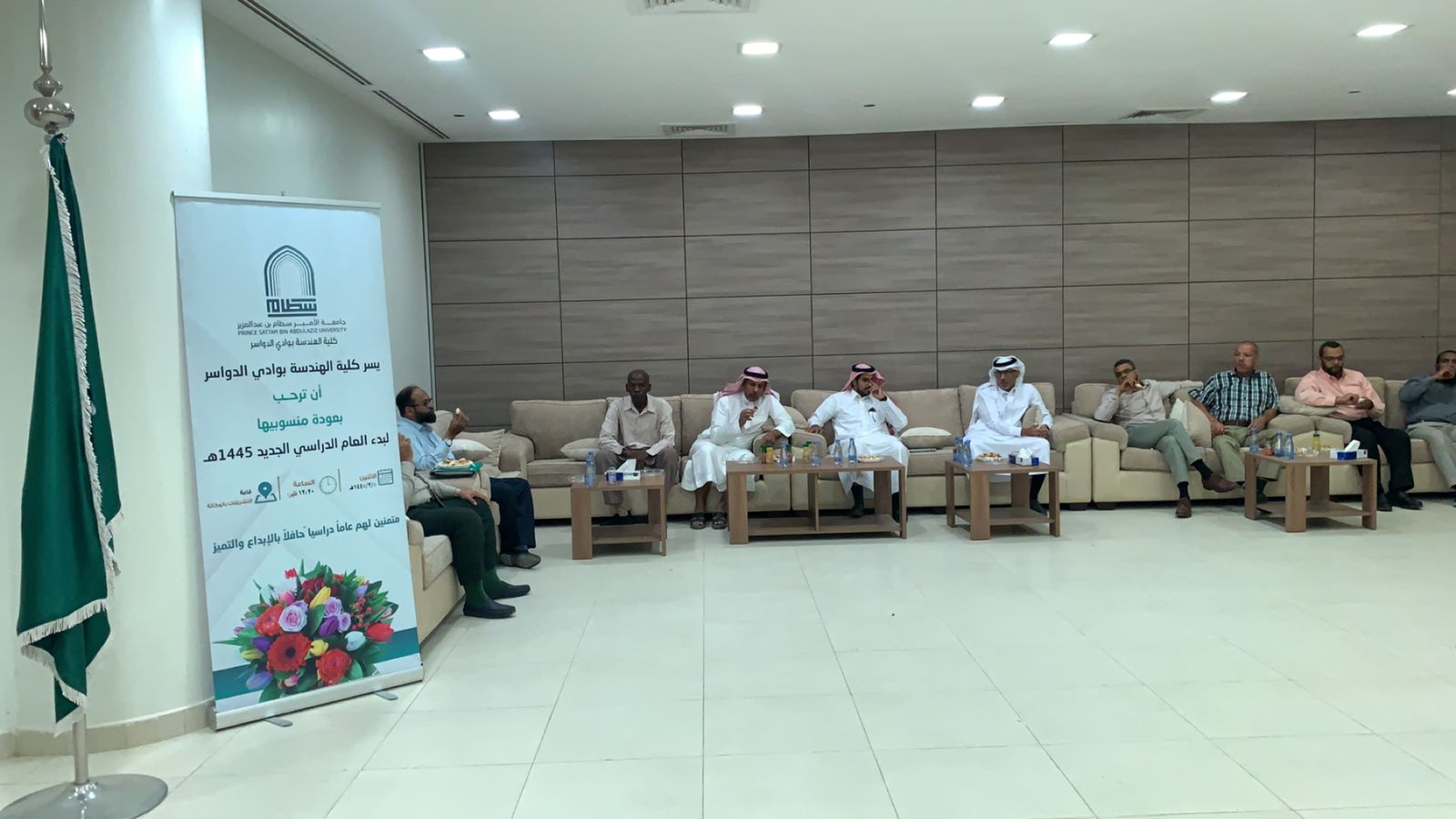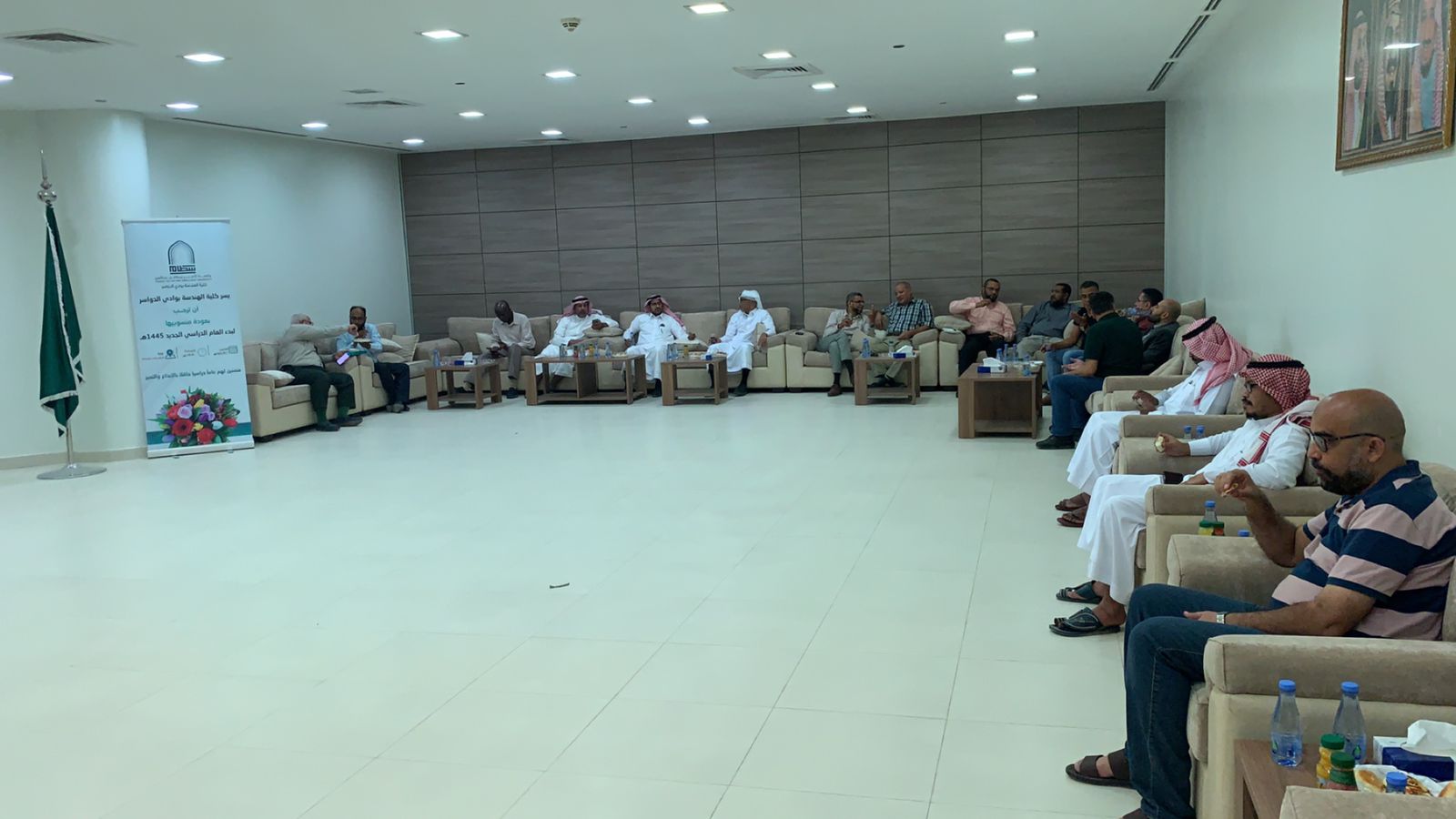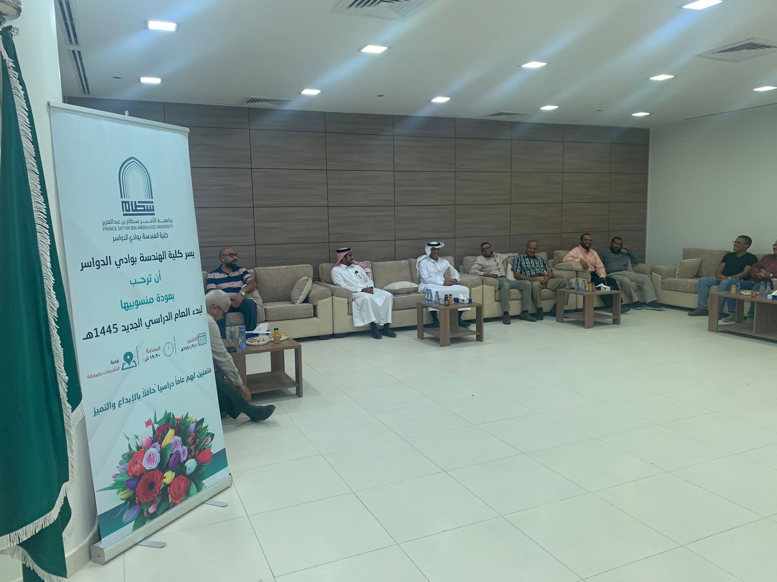 عقدت كلية الهندسة بوادي الدواسر لقاء ترحيبي بمنسوبيها، حيث استقبلت الكلية منسوبيها بالحفاوة والتقدير بمناسبة انطلاق العام الجامعي الجديد، 1445هـ. وحضر هذا اللقاء عميد الكلية د. محمد الحيدر ووكلائها ورؤساء الأقسام ومنسوبيها من أعضاء هيئة التدريس والإداريين.