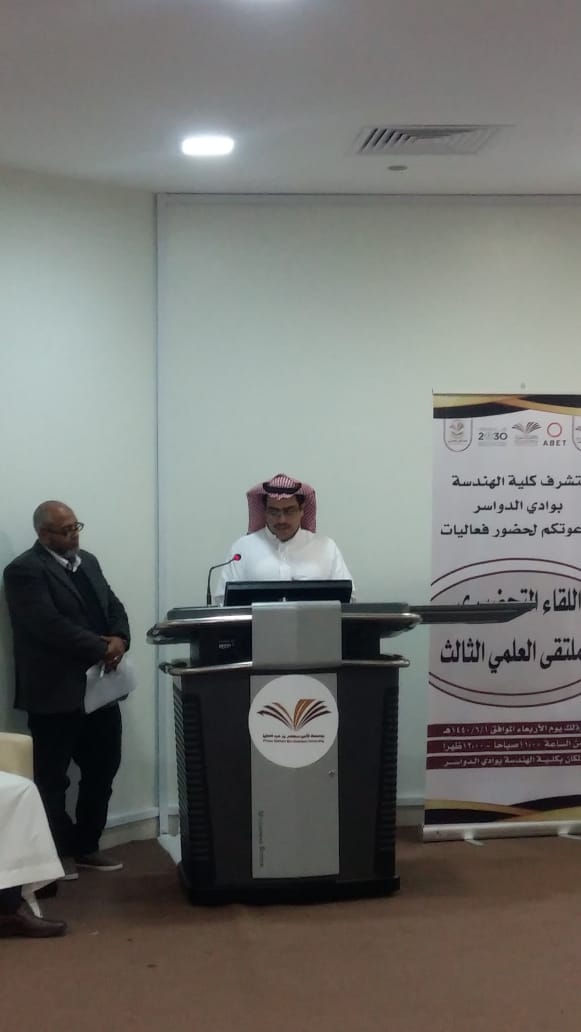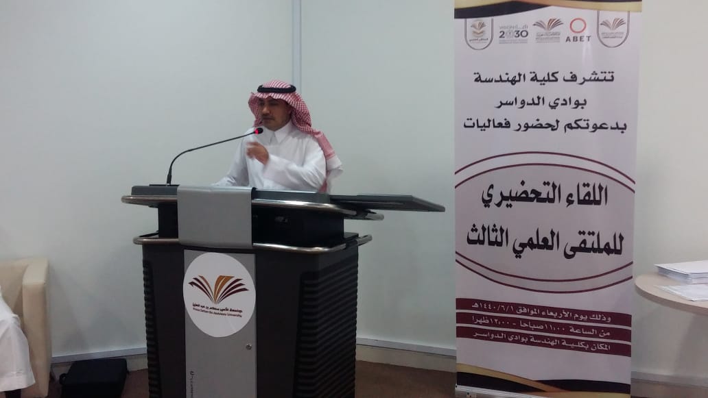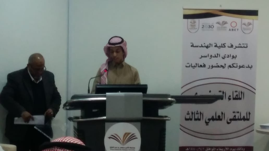 عدسة وتحرير : موفي الهذابقطار الإبداع والابتكار المؤدي إلى الملتقي العلمي الثالث في جامعة الأمير سطام بن عبد العزيز يصل إلي محطته ما قبل الأخيرة .استعداداً للمشاركة في ملتقى العلمي الثالث بجامعة سطام بن عبد العزيز نظمت كلية الهندسة بوادي الدواسر يوم الأربعاء الموافق : 1/6 / 1440 بقاعة الملتقيات العامة بمبنى كلية الآداب احتفالية الملتقي التحضيري الثالث ؛ وقد شَرُفْتّ هذه الاحتفالية بحضور أصحاب السعادة ...الدكتور/ ثلاب بن عبد الله الشكرة، عميد شؤون الطلاب . والدكتور / عبد الله بن سعود الشتيلي ، وكيل عمادة شؤون الطلاب . والدكتور / خالد العاصم ، وكيل عمادة شؤون الطلاب للشؤون الفنية . والدكتور / عبد الرحمن الحازمي وكيل عمادة شؤون الطلاب للفروع . والدكتور/ محمد حسن الابيض ، عضو اللجنة العليا للملتقى العلمي . والأستاذ / عمر العبدالله ، أمين عام الملتقى العلمي بعمادة شؤون الطلاب. وبعد استقبال ضيوف الكلية الأفاضل ؛ أفتتح الحفل بتلاوة آي من الذكر الحكيم تلاها على مسامع الحضور الطالب / عبد الله محمود أبو هشيمه . ثم بعد ذلك تقدم وكيل كلية الهندسة للشؤون الأكاديمية والتعليمية الدكتور / عبد الله الهجاج ، بالترحيب بالحضور وعبر عن سعادته بتنظيم هذا الملتقى الذي وصفه بـ " المنشط العلمي المتميز " حيث قال : يأتي انعقاد الملتقى العلمي الثالث لطلاب جامعة الأمير سطام بن عبد العزيز كتأكيد على تحقيق رسالة الجامعة في تطوير المعرفة والبحث والابتكار وصناعة الأعمال وصقل المهارات المعرفية للمساهمة في خدمة المجتمع والوطن وليؤكد على سعي الجامعة للمساهمة في تحقيق الأهداف الوطنية لمملكتنا الحبيبة وفقاً لروية ٢٠٣٠ وبما يحقق الكفاءة والفاعلية وتنمية الحس الإبداعي والابتكاري لدى طلاب الجامعة وصولاً إلى مستقبل زاهر وتنمية مستدامة، من خلال إتاحة تنمية المواهب ودعم الابتكار واستثمار الطاقات وتمكينها ، حيث تعكس محاور وفعاليات الملتقى هذه الرسالة جليا،حيث يهتم الملتقى بالبحث العلمي الرصين بعدة مسارات يتم من خلالها تقديم الإنتاج الفكري والمعرفي لطلاب الجامعة في إطار من التنافس الشريف والأمانة العلمية ، ومن منطلق إيماننا في عمادة كلية الهندسة بأهمية هذا الملتقى ودوره في إبراز مواهب الطلاب الابتكارية وإنتاجهم العلمي ، فقد قمنا بحث الطلاب على المشاركة بعدد من المشاريع والتي تميزت هذا العام بنقلة نوعية على مستوى الكم والنوع . وفي هذا الخضم أود أن أتقدم بالشكر الجزيل لكل من ساهم في التجهيز لهذا الملتقى، من منسوبي كلية الهندسة كل حسب المهام الموكلة إلية وأعضاء هيئة التدريس علي مجهوادتهم في الإشراف والتواصل الدائم مع الطلاب وحثهم علي المشاركة في الملتقي ؛ كل الشكر للاخوه الزملاء في عمادة شؤون الطلاب ، وكذلك لسعادة الدكتور / زياد الحلواني , منسق الملتقي العلمي الثالث بالكلية ، والشكر موصول أيضا لأبنائنا المشاركين في فعاليات هذا الملتقى ومنافساته الشريفة ؛ وفي ختام كلمته ، وثمن دور القيادة الرشيدة على دعهما اللامحدود للتعليم والبحث العلمي والتي جعلت حسب وصفة الجامعات السعودية تتبوء مكانه و ترتيبات عالمية متميز .بعد ذلك ألقى سعادة عميد شئون الطلاب الدكتور / ثلاب بن عبد الله الشكرة ، كلمة أستعرض فيها توجهات المملكة و الجامعة في الاستفادة القصوى من طاقات الشباب تحقيقا و تماشيا مع الرؤية الرشيدة ٢٠٣٠كما ذكر سعادته : أن الجامعة تقوم بتوجيهه المشاريع الفائزة إلي الصناعة و الحصول علي براءات اختراع يمكن ترجمتها لأعمال علي ارض الواقع . وحث سعادته الطلاب علي المشاركة في مثل هذه الفعاليات لأنها التي تبلور شخصيتهم وتساهم في بناء وطن يحتاج إلي كل ابن من ابنائة ليساهم في دفع عجلة الوطن في طريق المجد والتفوق العلمي .ثم قدم الدكتور / زياد الحلواني ، بشكل وجيز استعراض إحصائية المشاركات في الملتقي ثم أشار للطلاب لتقديم مشاريعهم في كافة المحاور المشاركة أمام السادة الحضور , وفي هذه الفقرة تم استعراض الأعمال المح