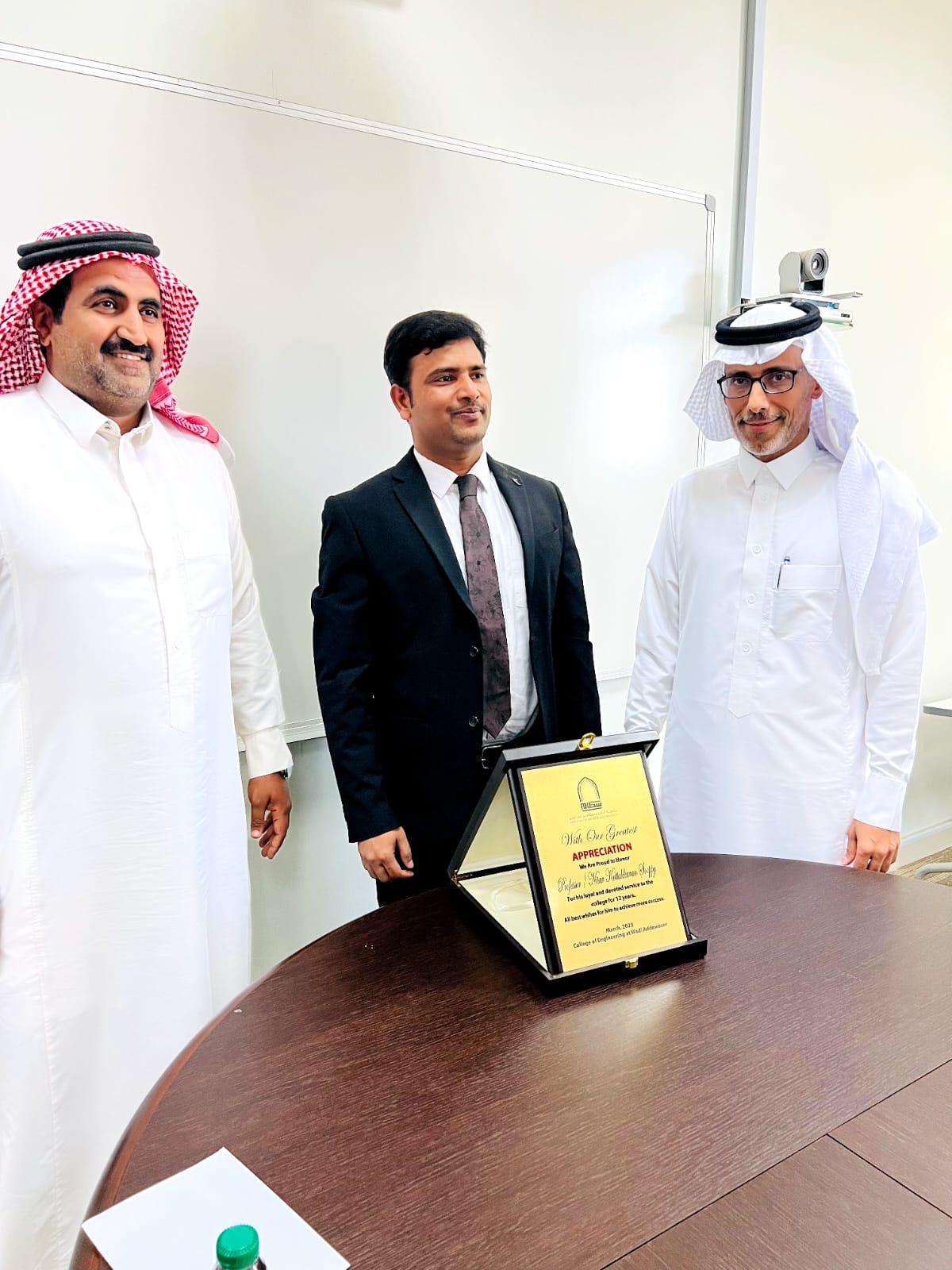 قامت كلية الهندسة بوادي الدواسر بتكريم د. محمد عبدالعال بمناسبة ترقيته إلى رتبة استاذ دكتور، و د. حسن يوسف بمناسبة ترقيته إلى رتبة استاذ دكتور، و د. نسار بمناسبة نهاية خدمته في كلية الهندسة بوادي الدواسر وانتقاله للخرج، من جانبهم قدم المكرمين شكرهم وعرفانهم للكلية مثمنين هذا التكريم الذي يدفعهم لتقديم المزيد من الجهود والتميز.