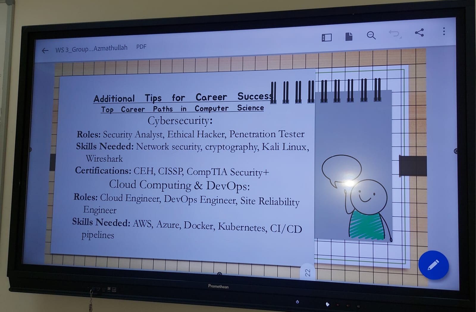 هدفت الورشة إلى تعزيز وعي الطالبات بأهمية التخطيط المهني المبكر، وبيان ضرورة وضع خطة واضحة لتطوير المهارات وتحقيق الأهداف المهنية. كما تناولت تقديم معلومات إرشادية تسهم في دعم مسيرتهن المهنية، واستعرضت عددًا من المجالات الحيوية التي يمكن لطلاب علوم الحاسب التخطيط للعمل فيها، بما يفتح أمامهم آفاقًا وظيفية واعدة مستقبلًا.