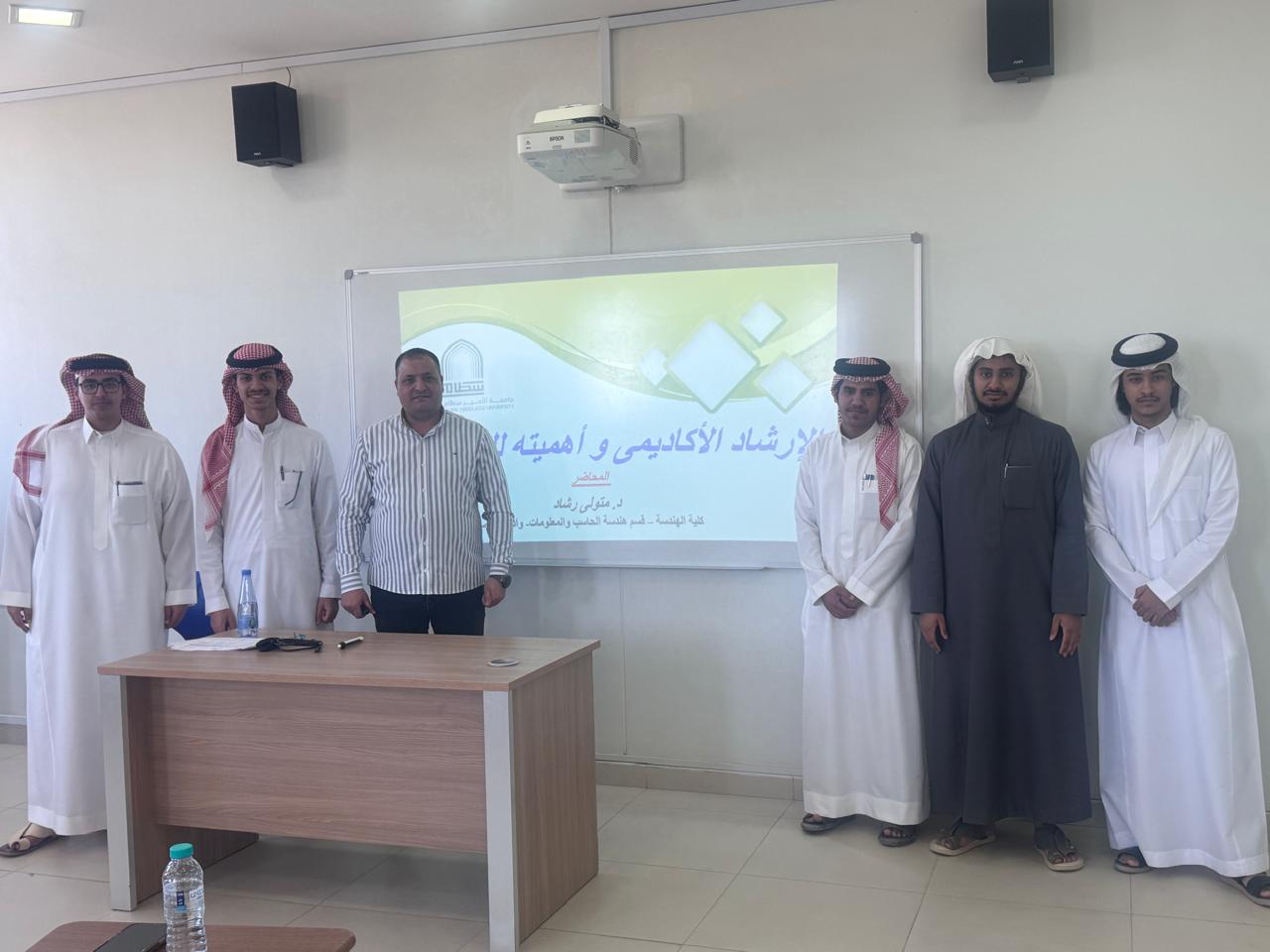 نظّمت وحدة الإرشاد الأكاديمي بكلية الهندسة بوادي الدواسر ورشة عمل بعنوان «الإرشاد الأكاديمي وأهميته للطالب»، قدّمها الدكتور متولي رشاد، واستهدفت طلبة قسم هندسة الحاسب والمعلومات، وذلك يوم الثلاثاء الموافق 10 فبراير 2026م.