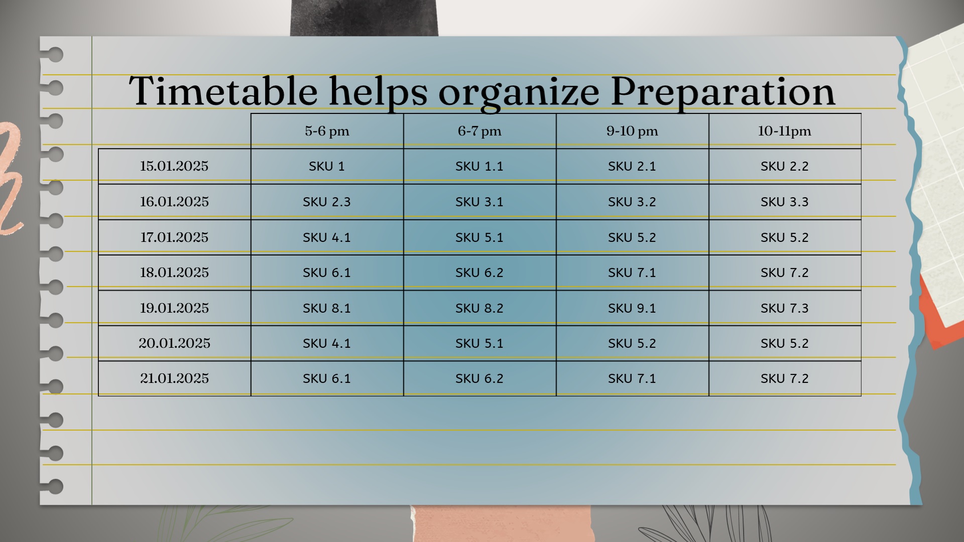جدول زمني جيد التخطيط لمراجعة المواد التي تم تعلمها خلال الدراسة الأكاديمي