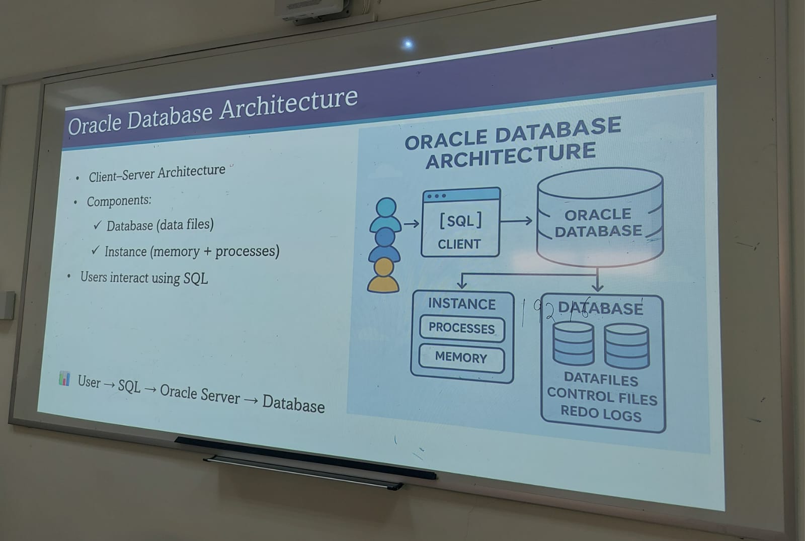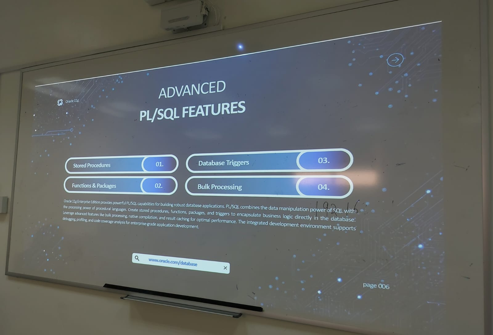 هدفت الورشة إلى تعريف الطالبات بأهمية نظام إدارة قواعد البيانات العلائقية Oracle 11G ومفاهيمه الحديثة، كما استعرضت أبرز الخصائص المتقدمة في قواعد البيانات، بما في ذلك تقنيات PL/SQL مثل المشغلات (Triggers) والمعالجة الدُفعية (Bulk Processing) وغيرها من الأدوات المهمة.