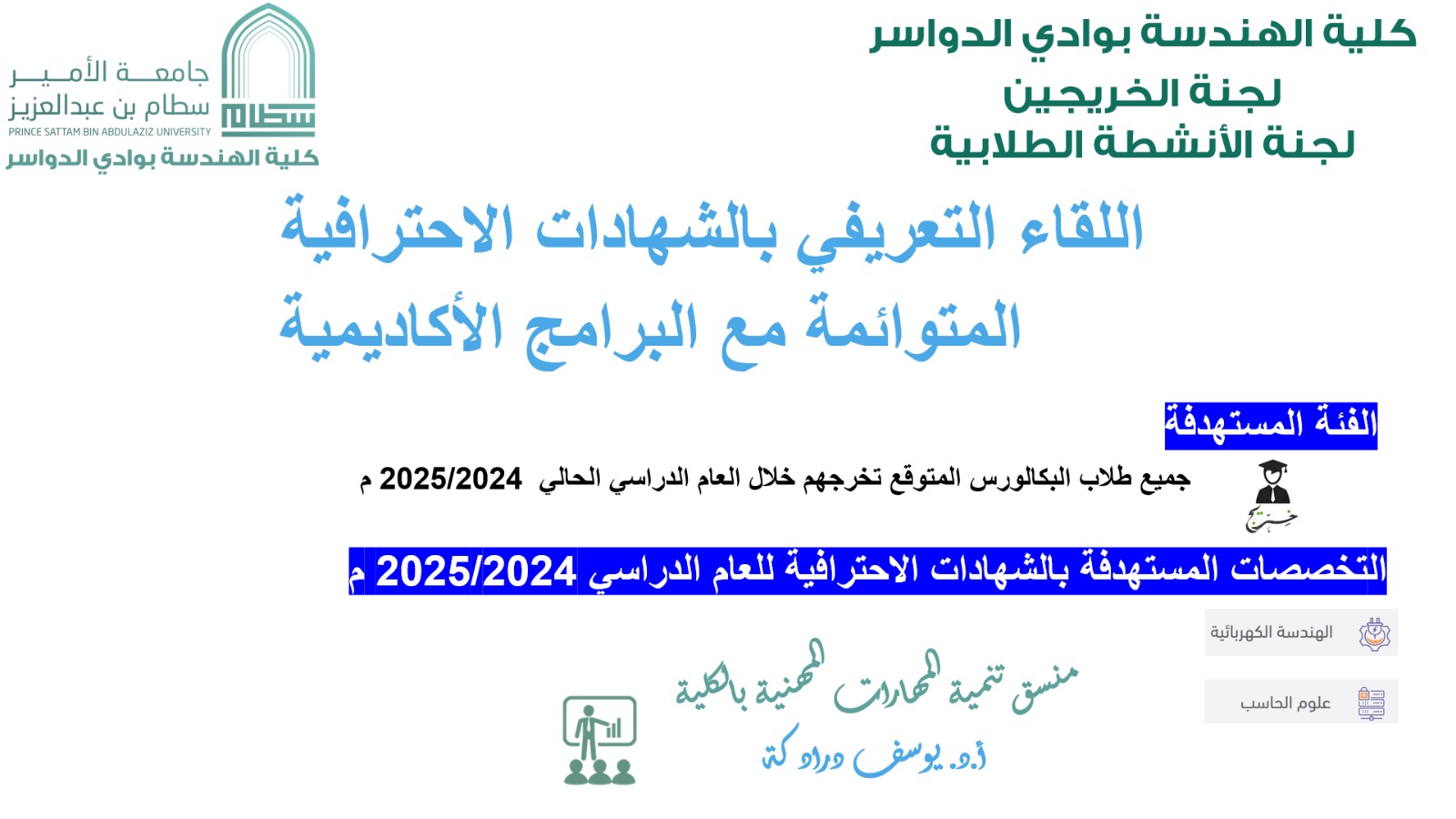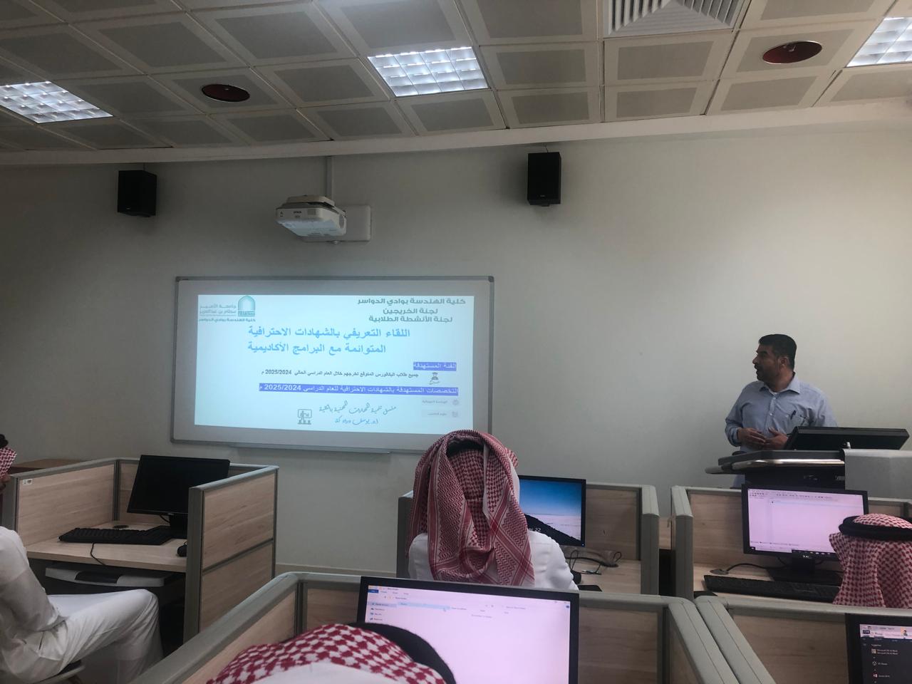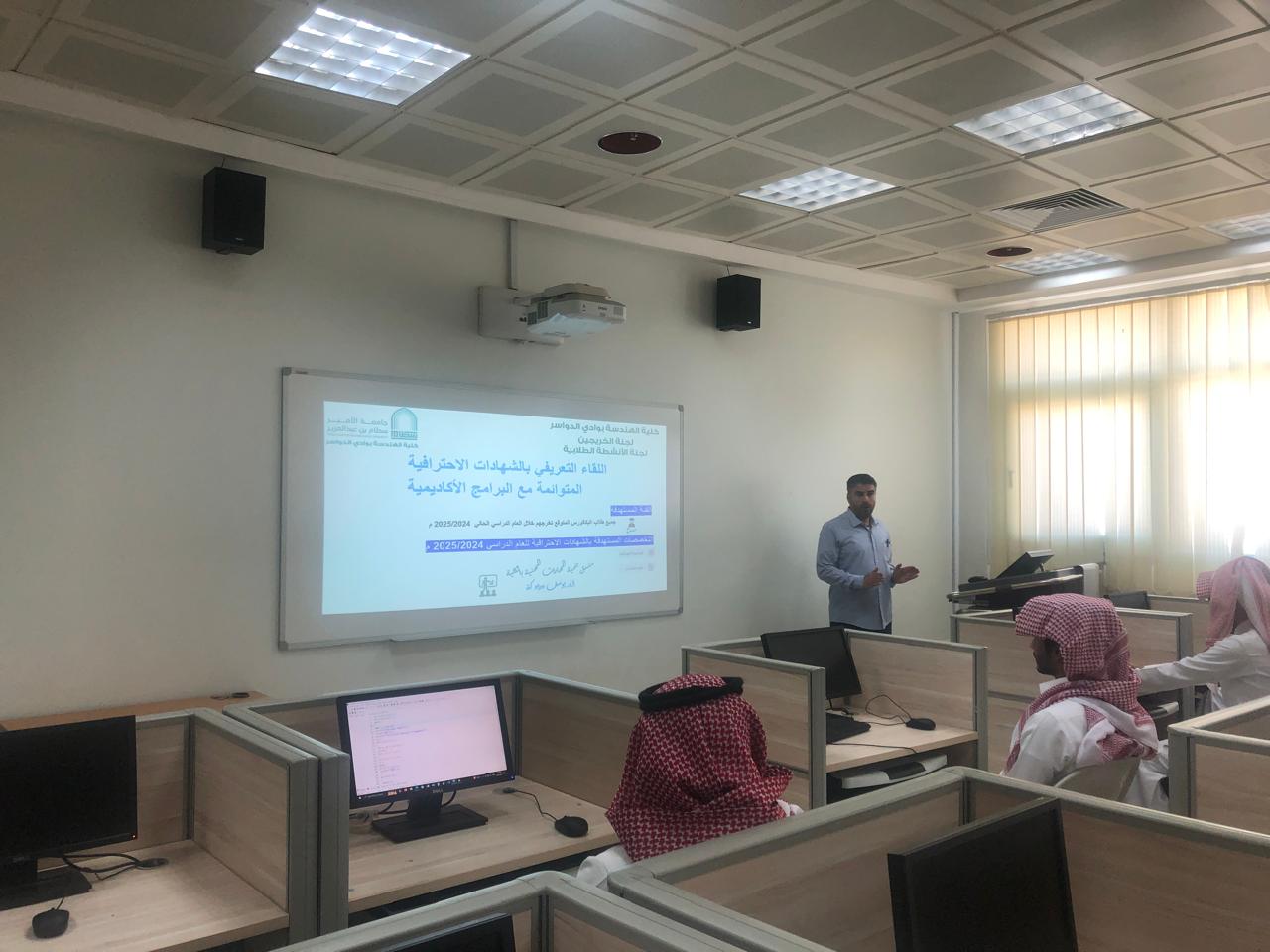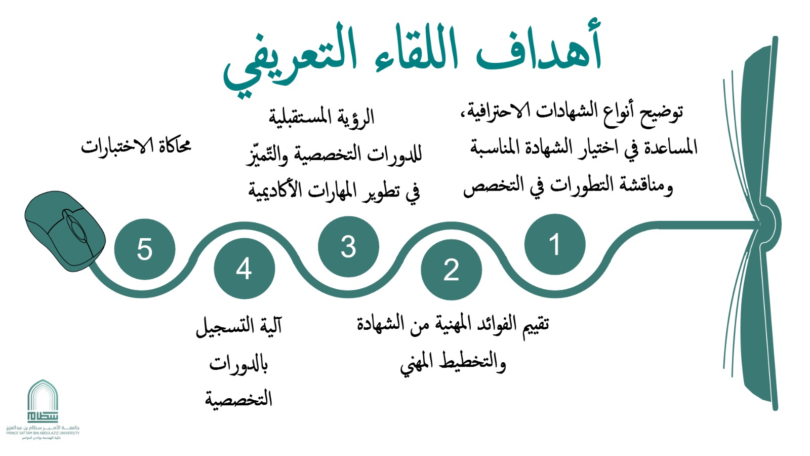 وتضمن اللقاء شرح استراتيجيات تقييم متطلبات الشهادة, اختيار الشهادة المناسبة, تقييم الفوائد المهنية من الشهادة, التخطيط المهني حسب التخصصات المستهدفة، حيث تعتبر هذه الشهادات الاحترافية مقياسًا مُعتمدًا.