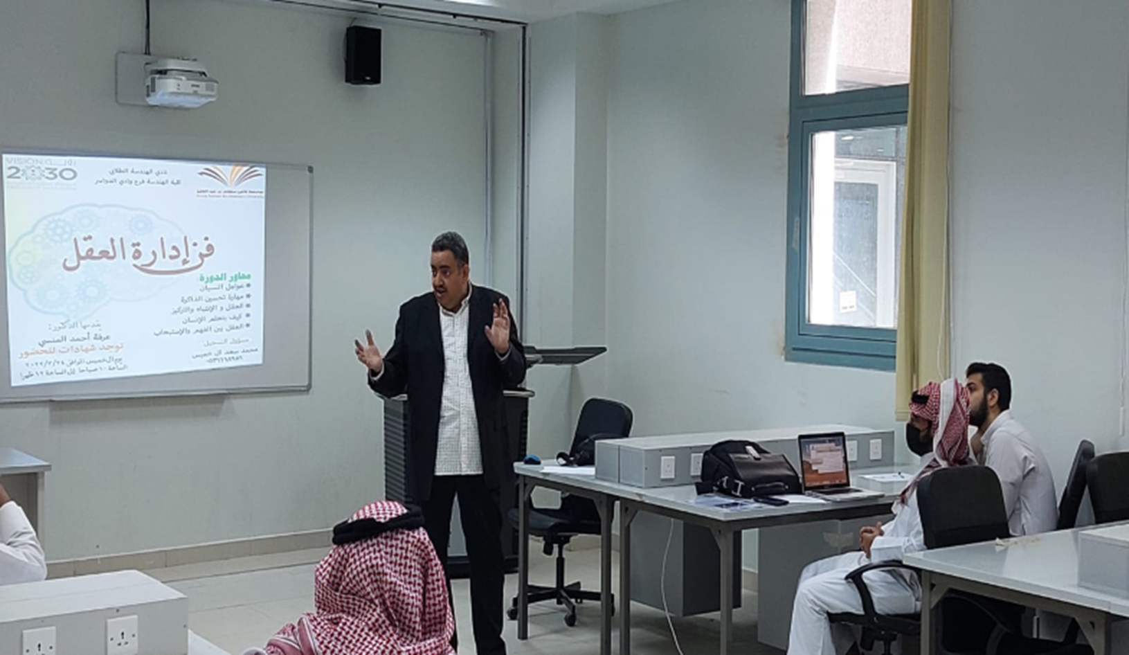 نظم نادي الهندسة الطلابي في وادي الدواسر ورشة تدريبية بعنوان ”فن إدارة العقل“ وذلك في مقر نادي الهندسة الطلابي في يوم الخميس الموافق 1443/8/21هـ.