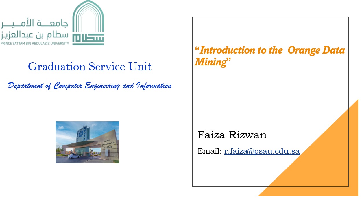 نظّمت وحدة تنمية المهارات المهنية، ورشة عمل بعنوان «التنقيب عن البيانات باستخدام Orange (Orange Data Mining)»، وذلك لطالبات قسم هندسة الحاسب والمعلومات بكلية الهندسة بوادي الدواسر. وقدّمت الورشة الأستاذة فايزة رضوان، المحاضرة بالقسم، يوم الأربعاء الموافق 15/4/2026م، من الساعة 12:00 ظهرًا حتى 1:00 ظهرًا، عن بُعد.