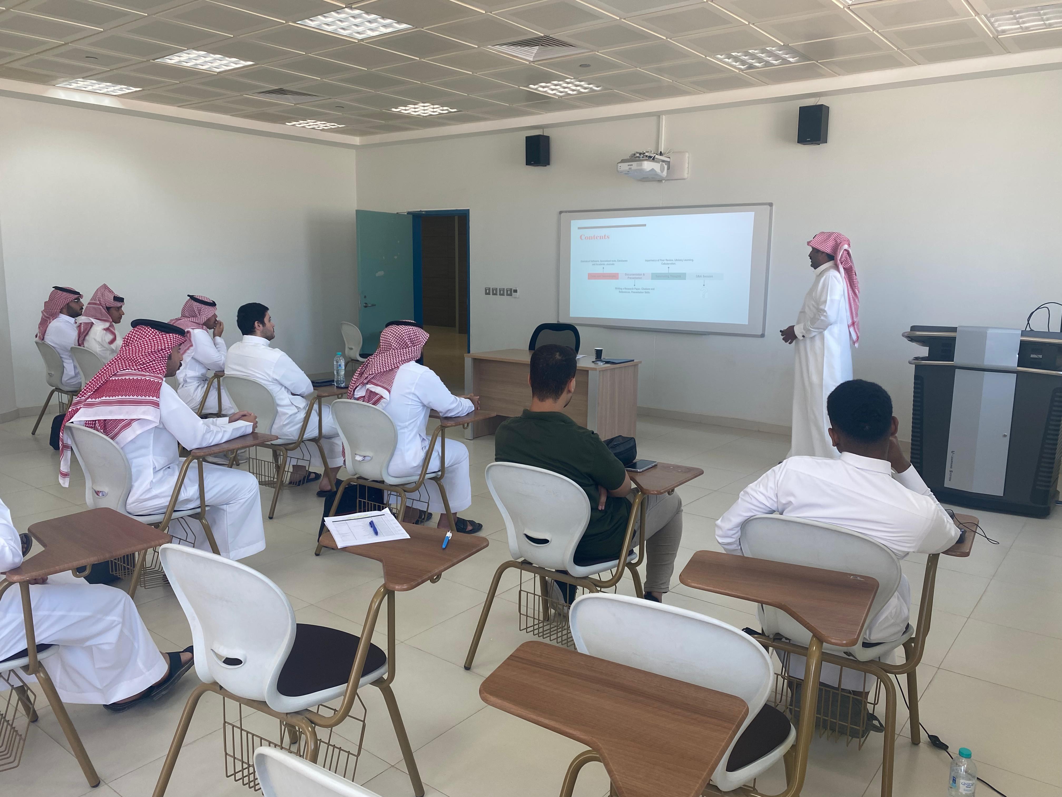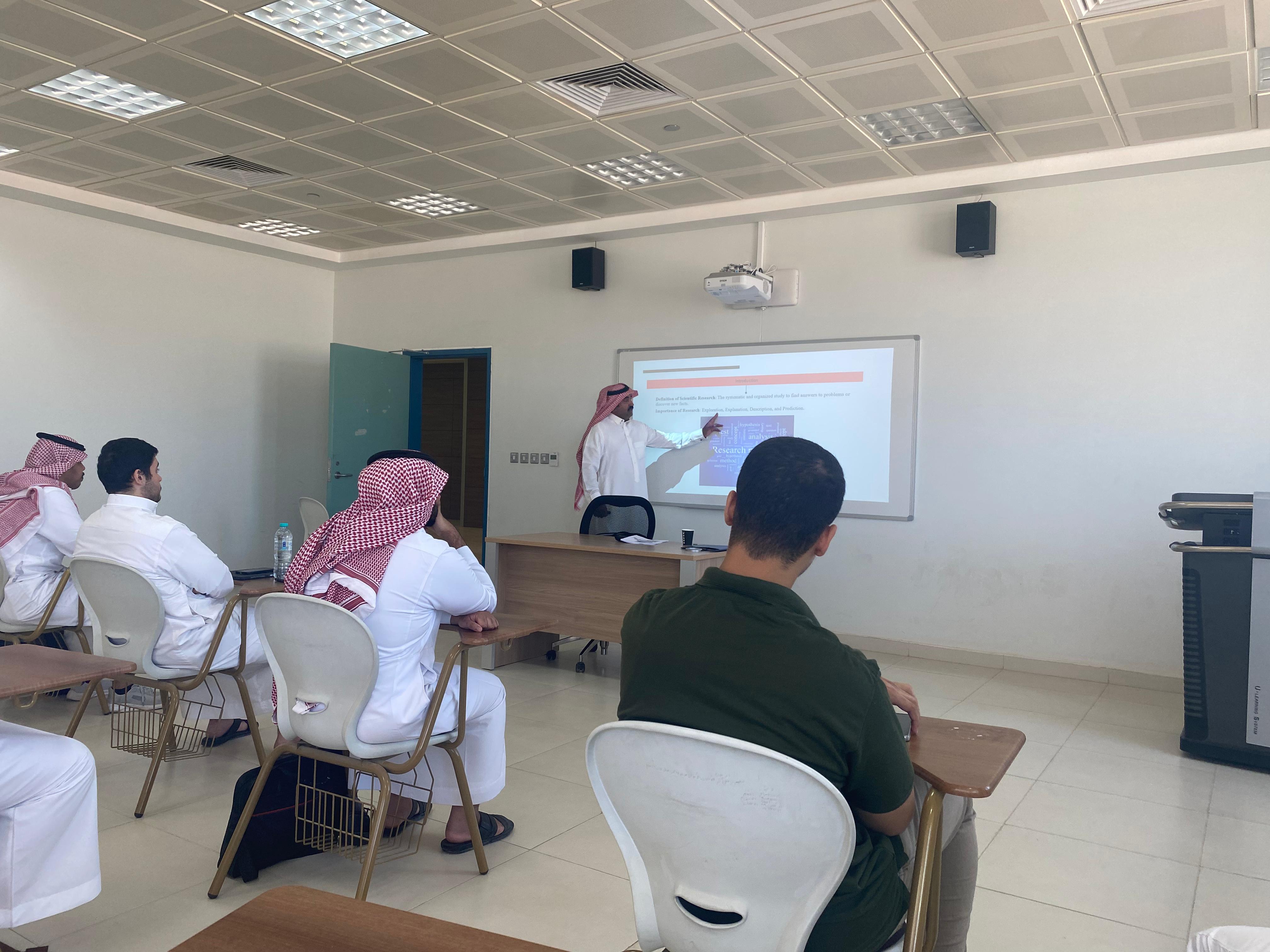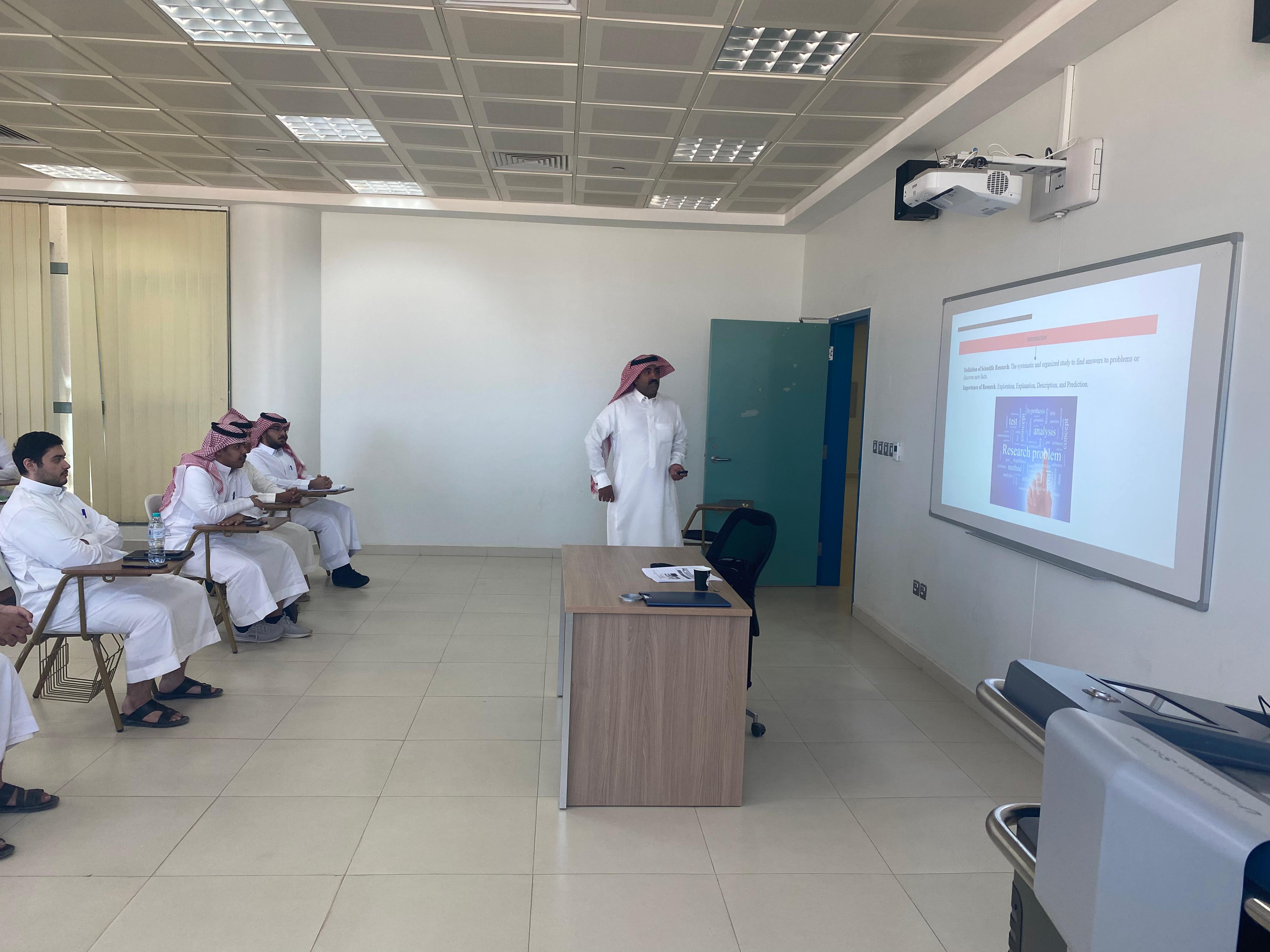 نظمت كلية الهندسة بوداي الدواسر ورشة عمل بعنوان " طرق وآليات البحث العلمي" لطلاب المسجلين في مقررات مشاريع التخرج (1)،(2) حيث قدم الدورة وكيل الكلية للشؤون الأكاديمية الدكتور / عبيد بن مرثع الدوسري وذلك يوم الاثنين 01/04/1445هـ وبحضور عدد من الطلاب.
