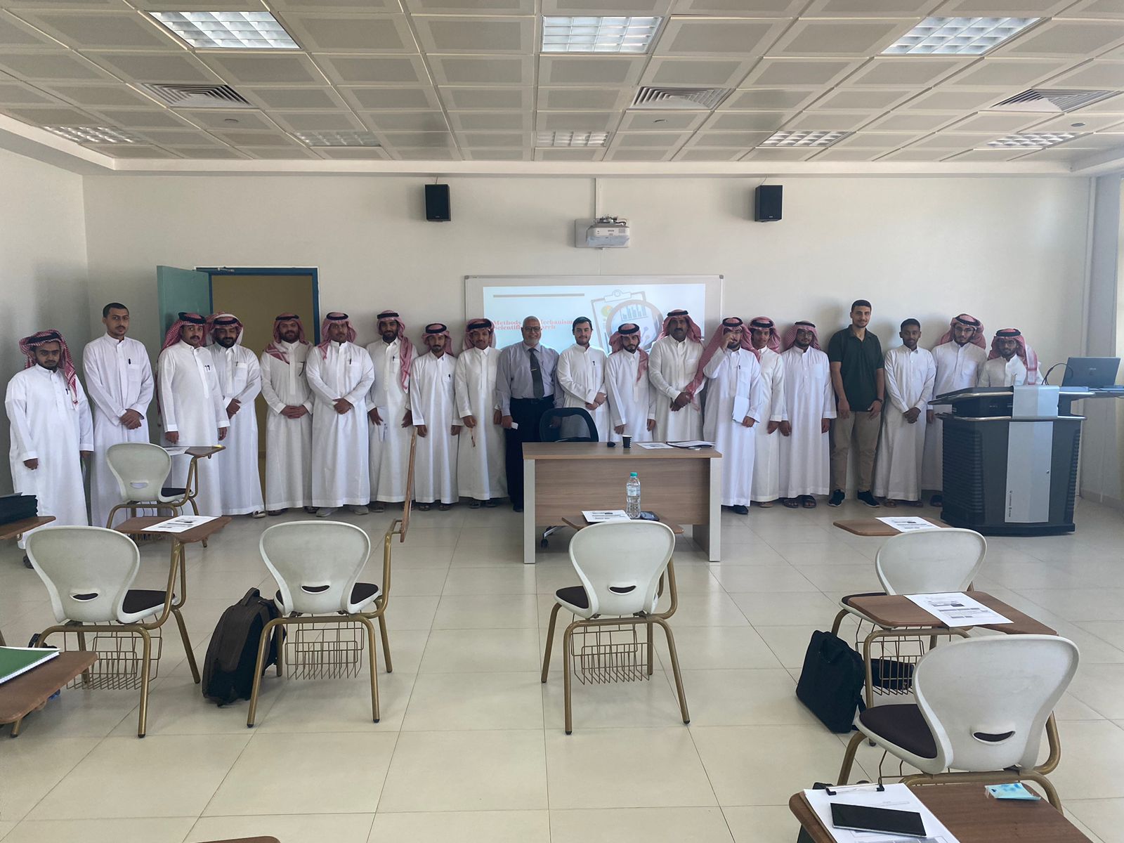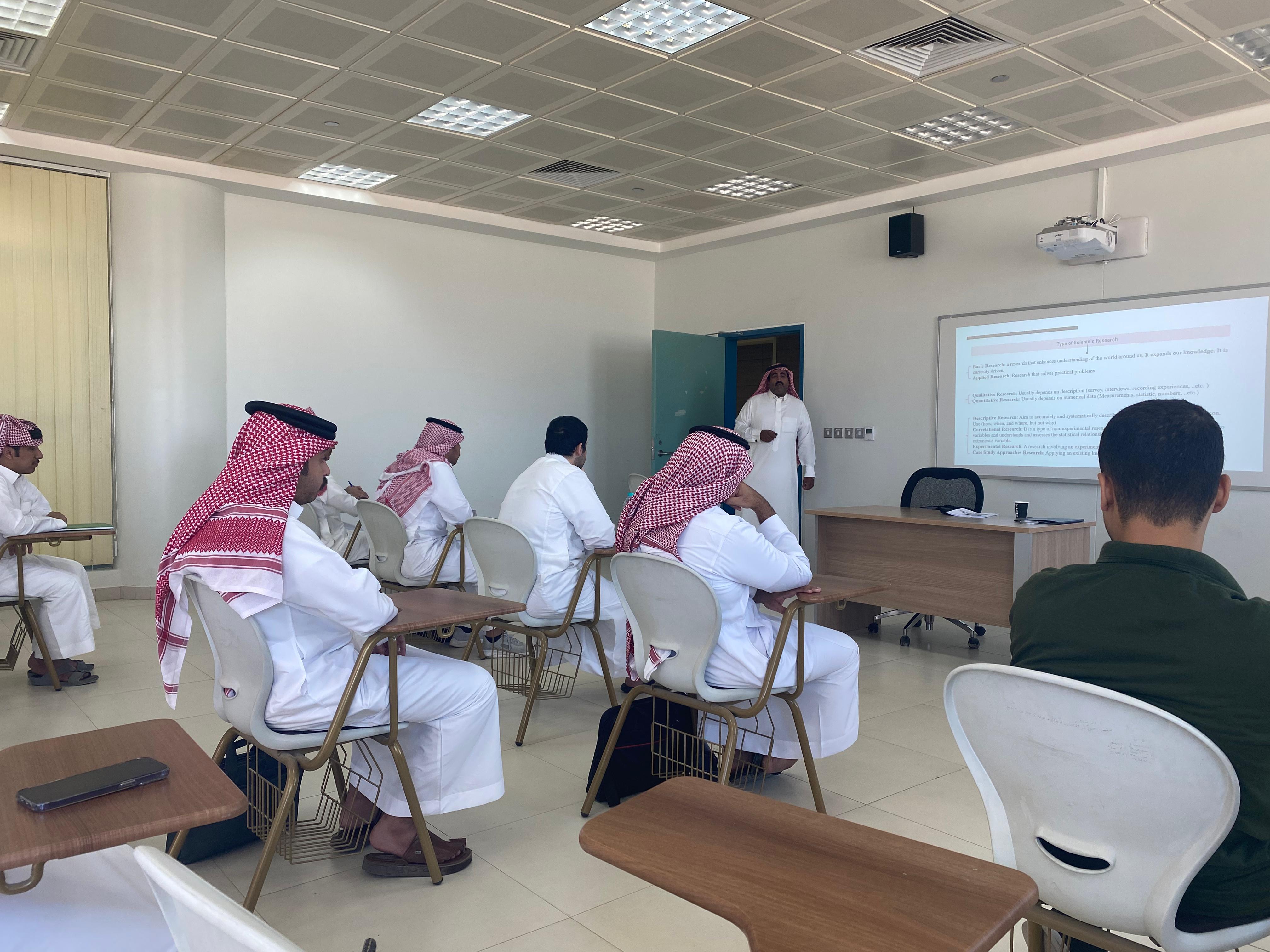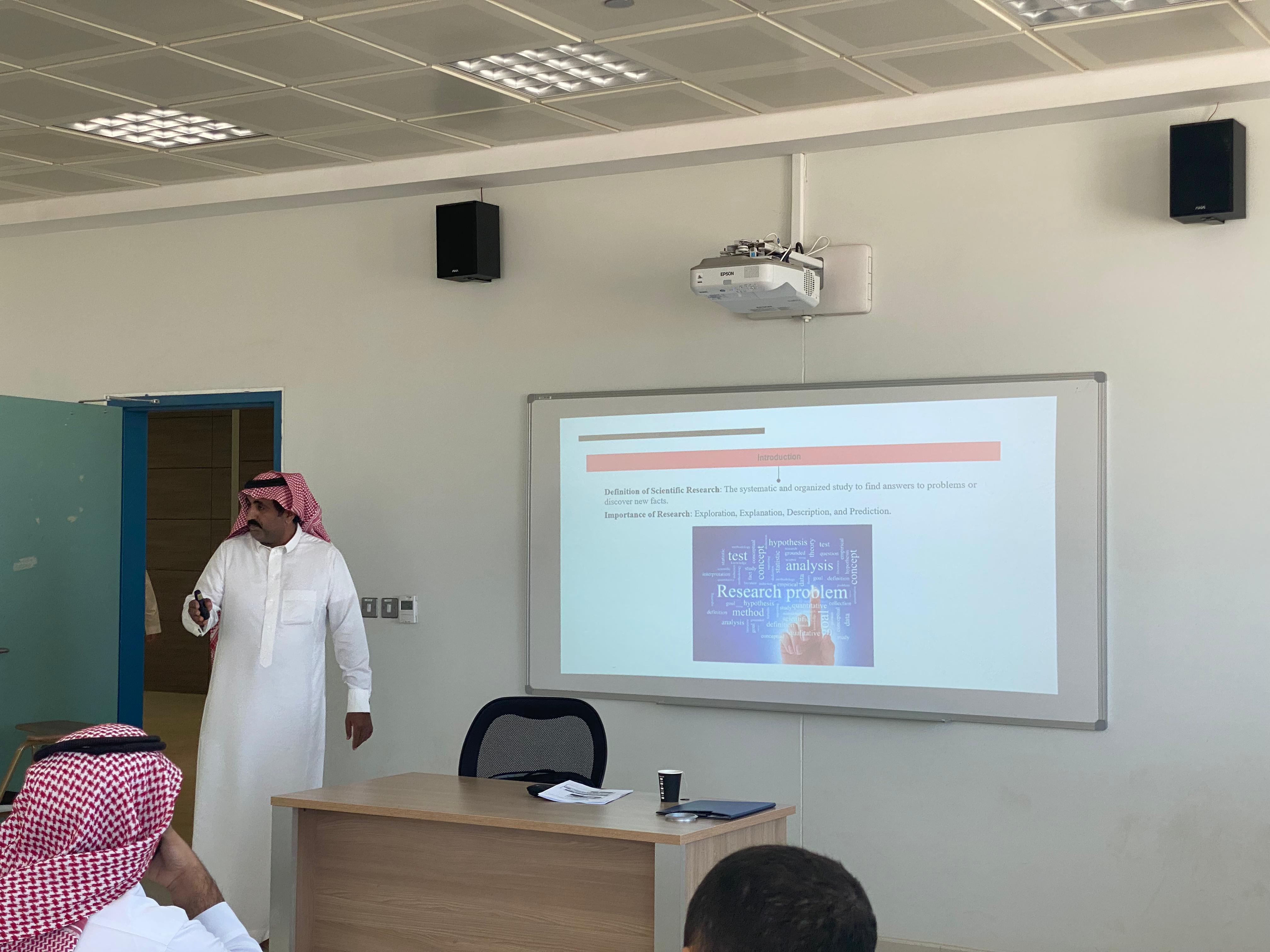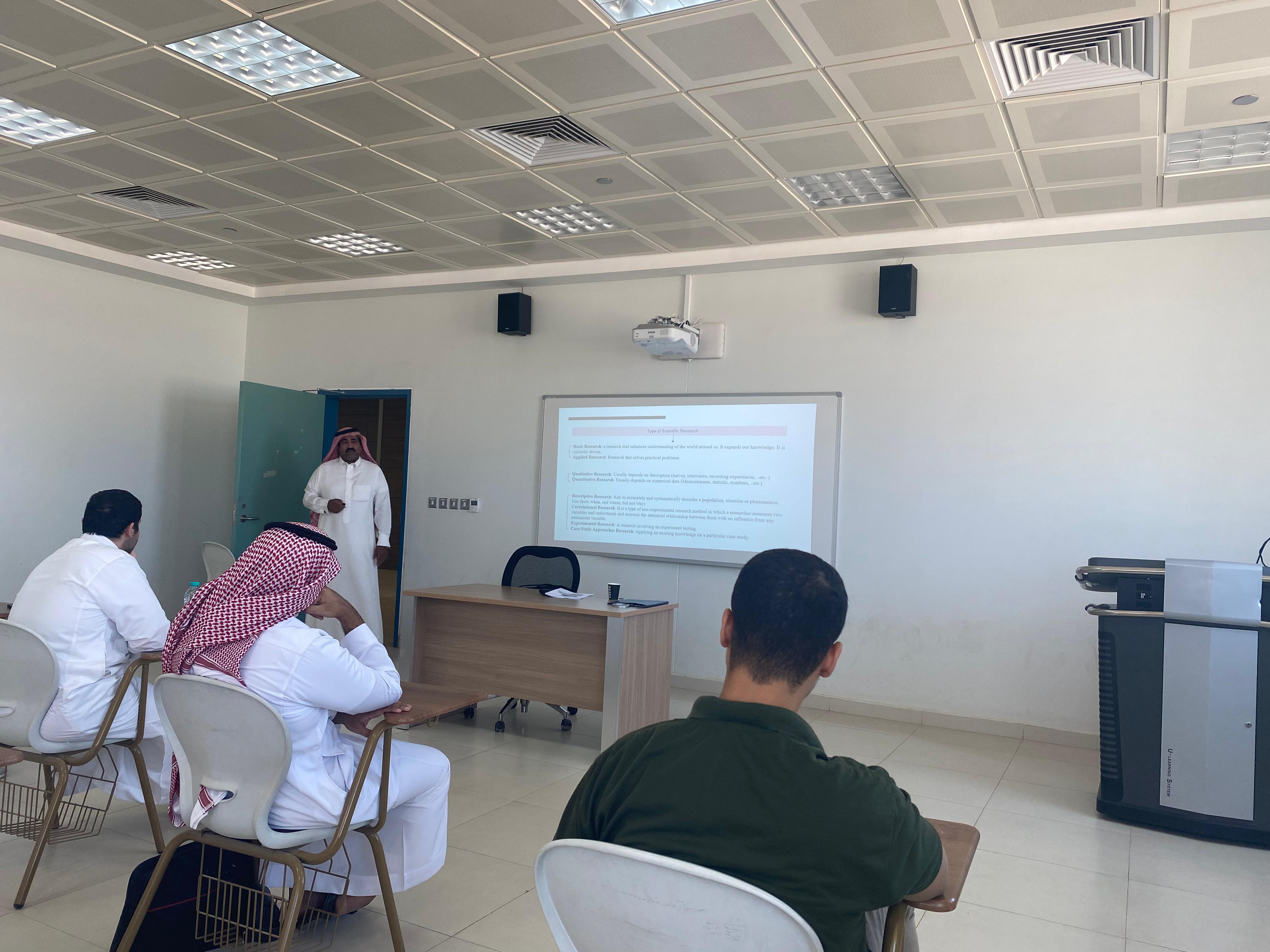 نظمت كلية الهندسة بوداي الدواسر ورشة عمل بعنوان " طرق وآليات البحث العلمي" لطلاب المسجلين في مقررات مشاريع التخرج (1)،(2) حيث قدم الدورة وكيل الكلية للشؤون الأكاديمية الدكتور / عبيد بن مرثع الدوسري وذلك يوم الاثنين 01/04/1445هـ وبحضور عدد من الطلاب.