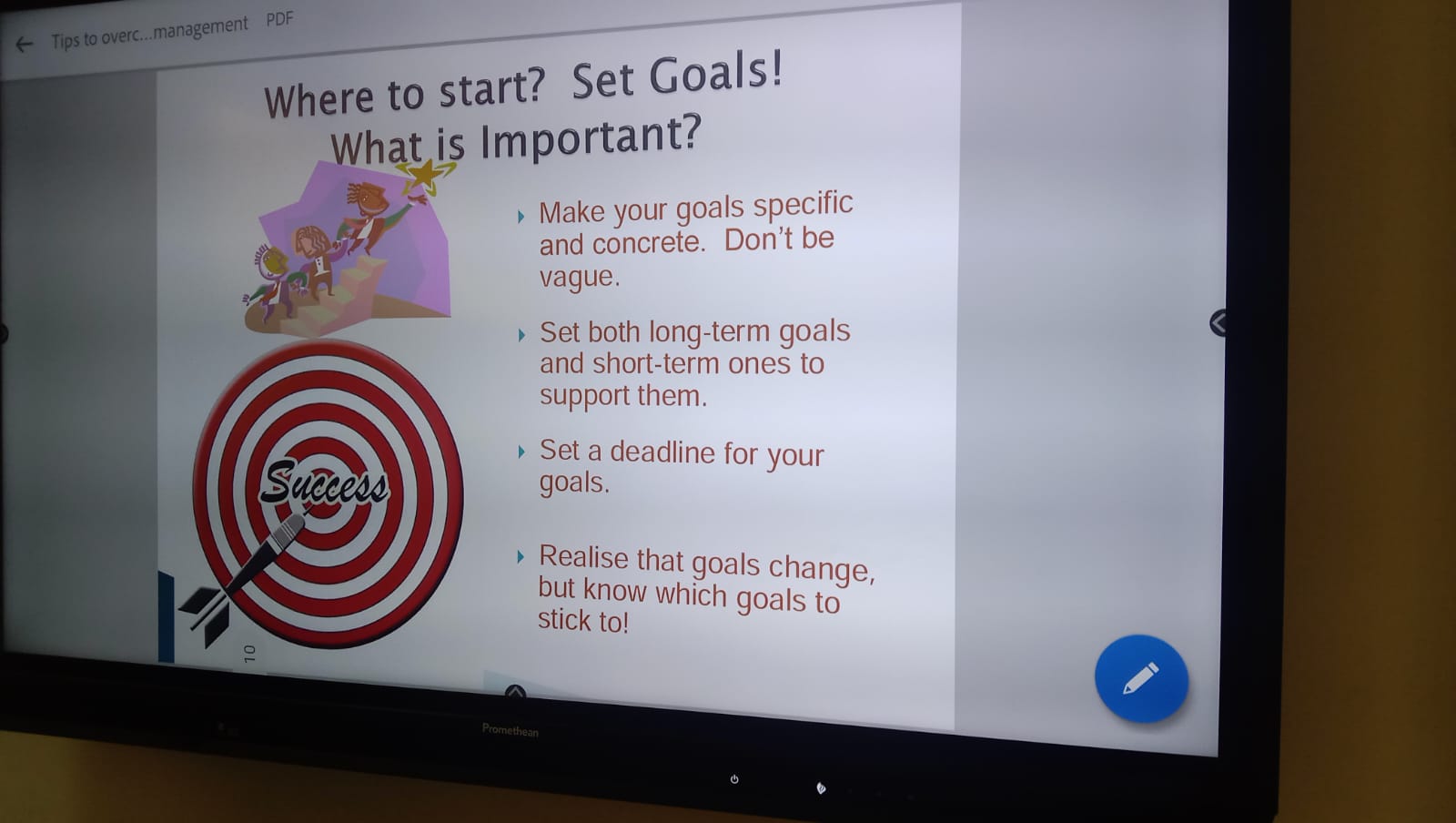 قدّمت الأستاذة تهـمينة الجلسة الرئيسة للورشة، حيث تناولت أولًا أسباب التوتر الشائعة مثل الخوف من الفشل وضعف الاستعداد، وتأثيرها على الصحة النفسية والأداء الأكاديمي. ثم استعرضت مجموعة من تقنيات إدارة الوقت الفعالة مثل وضع أهداف واقعية، استخدام تقنية بومودورو، وتجنب التسويف من خلال الدراسة المنتظمة.