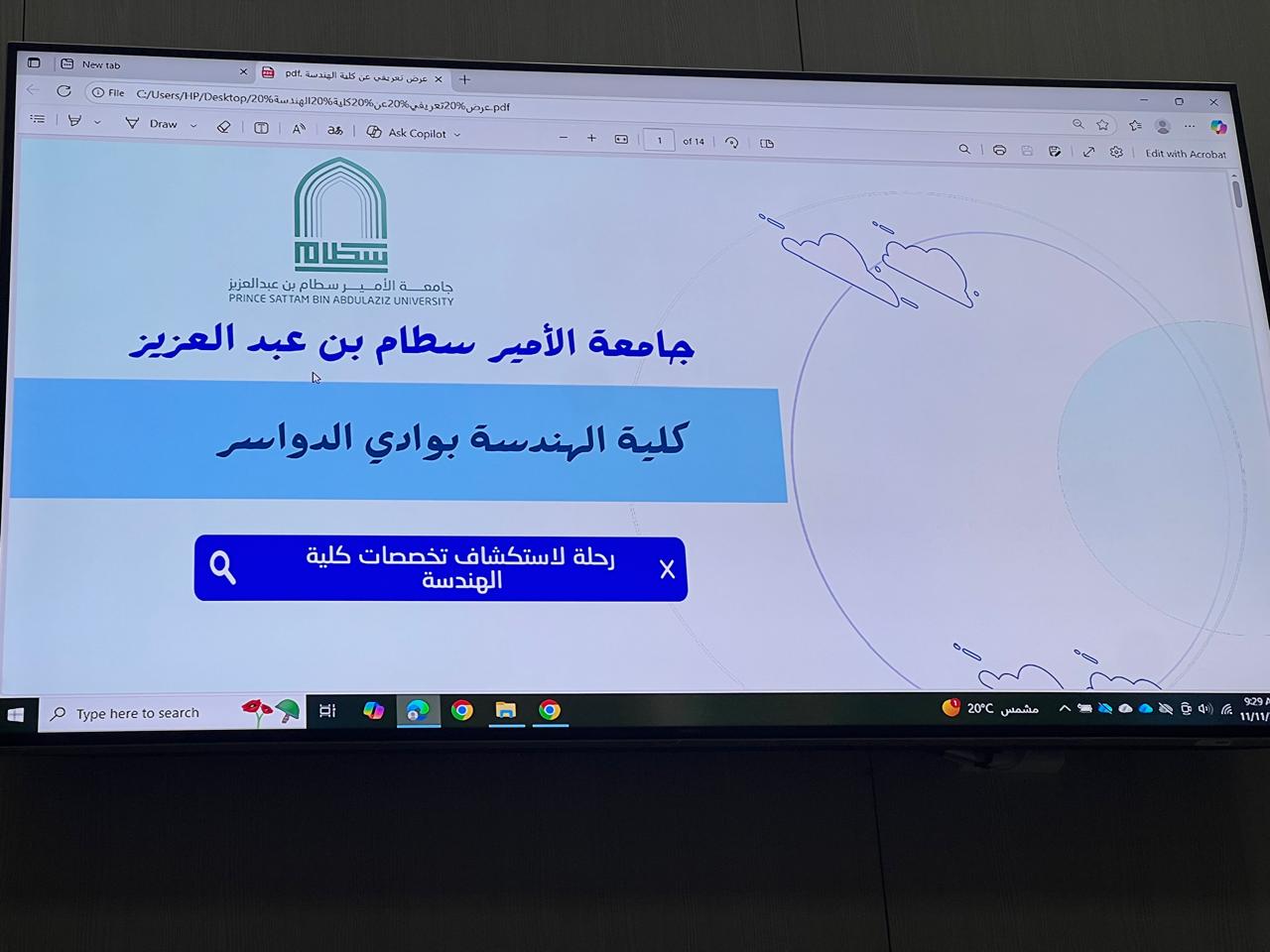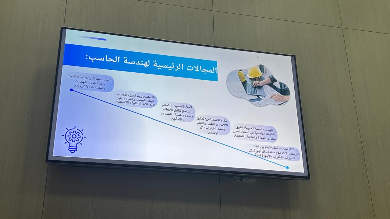 استضافت كلية الهندسة شطر الطالبات بوادى الدواسر وفداً من 9 طالبات و2 من معلمات مدرسة ثانوية المعتلا يوم الثلاثاء الموافق 11/11/2025 فى تمام الساعة الثامنة والنصف صباحا، حيث تم الترحيب من طالبات الكلية وأعضاء هيئة التدريس بالوفد القادم. خلال الزيارة، قدم بعض من طالبات الكلية عرضًا تقديميًا عن تخصصات الكلية (هندسة الحاسب والمعلومات- الهندسة الكهربائية). كما تضمن اللقاء جلسة نقاش تفاعلية أجاب فيها مقدمو العرض وأعضاء من هيئة التدريس على أسئلة الطالبات حول الهندسة والتكنولوجيا. ثم بعد ذلك تم القيام بجولة فى قاعات ومعامل الحاسب بالكلية والمكتبة. وفى نهاية الزيارة تم توزيع شهادات تقدير لمعلمات المدرسة وطالبات الكلية المشاركات فى استقبال وتنظيم الزيارة. وقد تمت هذة الزيارة تحت اشراف د. زهراء طارق مشرفة لجنة المسؤولية المجمعية ود. ليلى بن نجيمة منسقة برنامج علوم الحاسب.