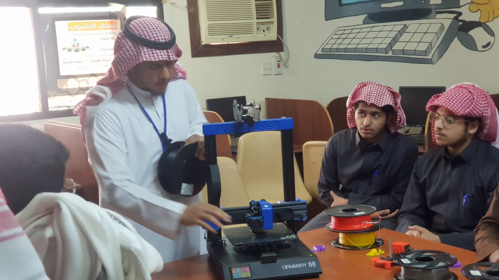 The Engineering Club of the College of Engineering in Wadi Al-Dawasir holds a 3D printing course at Al-Wadi Al-Ahlia High School.