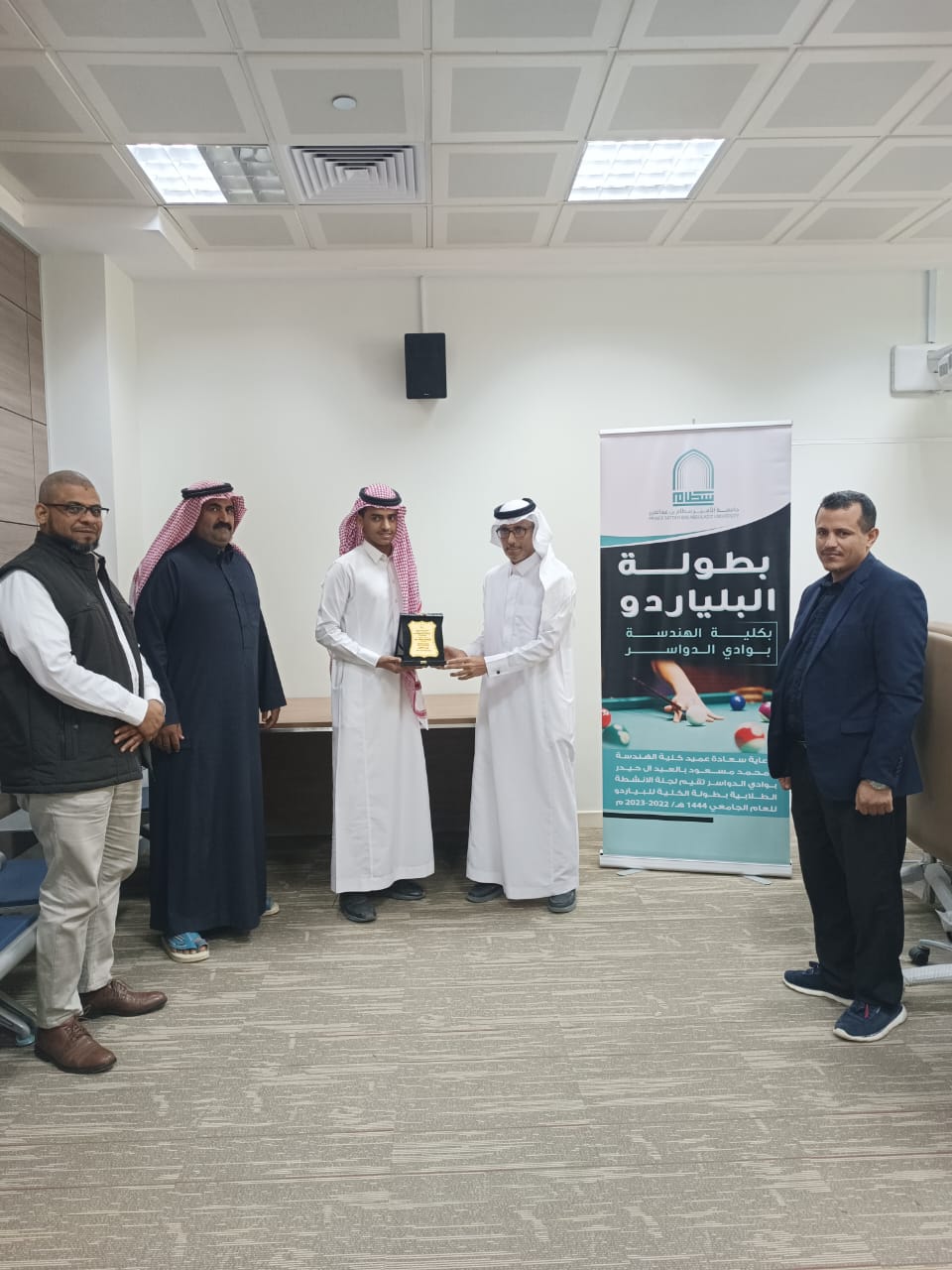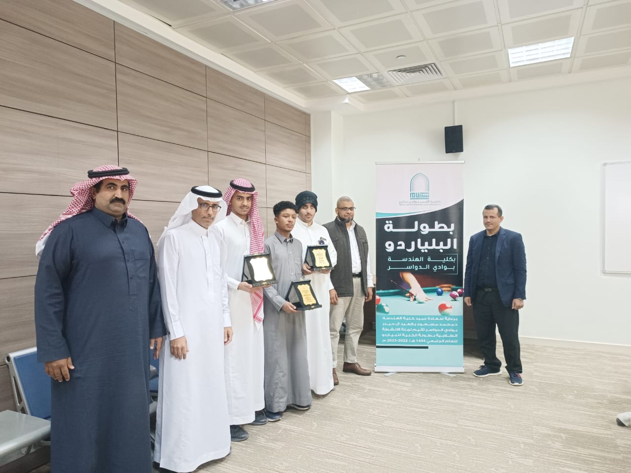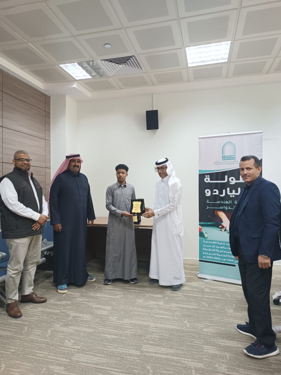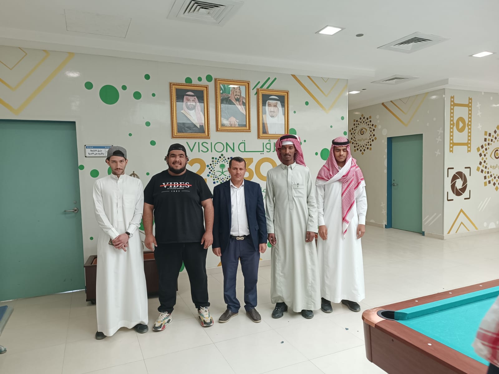 On Monday and Wednesday, corresponding to February 22 and 22, 2023, the Student Activities Committee held a billiards tournament for college students under the auspices of His Excellency the Dean of the College, Dr. Muhammad Al-Haidar. Prizes were handed over to the winners of the first three places, and the number of participants in the tournament reached about 10 students.