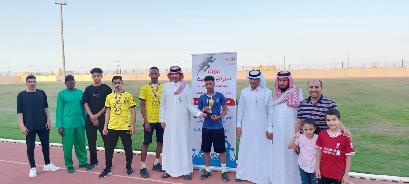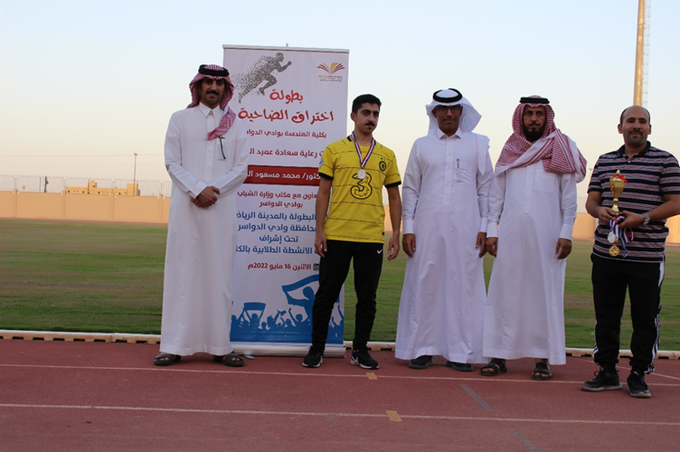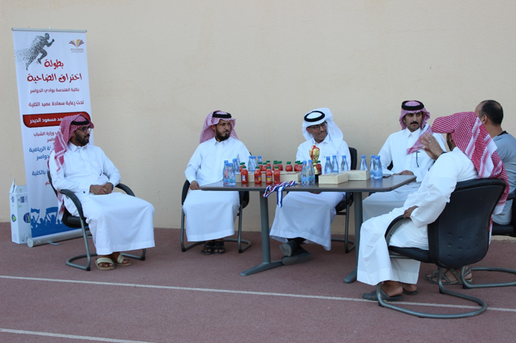 At the end of the ceremony, Dr. Al-Haider thanked the organizers of this competition and wished the students success in the upcoming competitions. Al-Haidar also extended his sincere thanks and appreciation to Professor Saqr Al-Daraan and all employees of the Ministry of Sports office in Wadi Al-Dawasir for their fruitful cooperation and interaction with the college to contribute to the success of this competition and support sports programs and youth organized by the college.