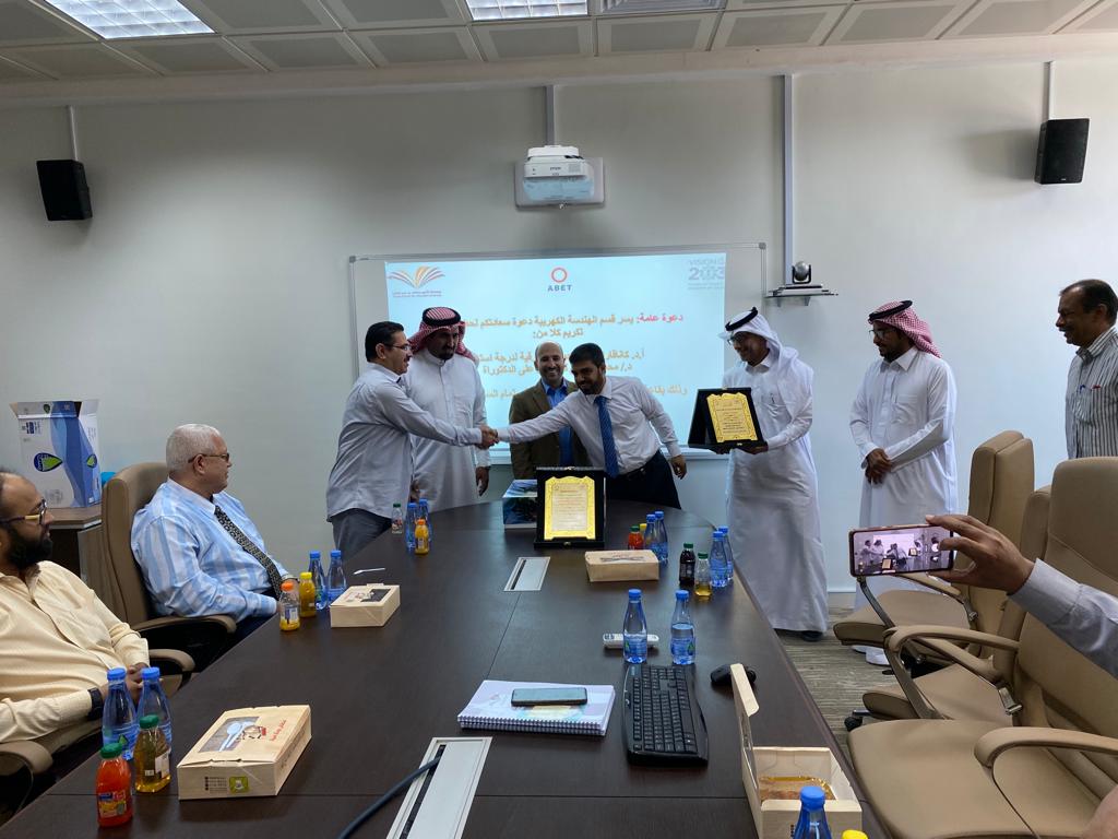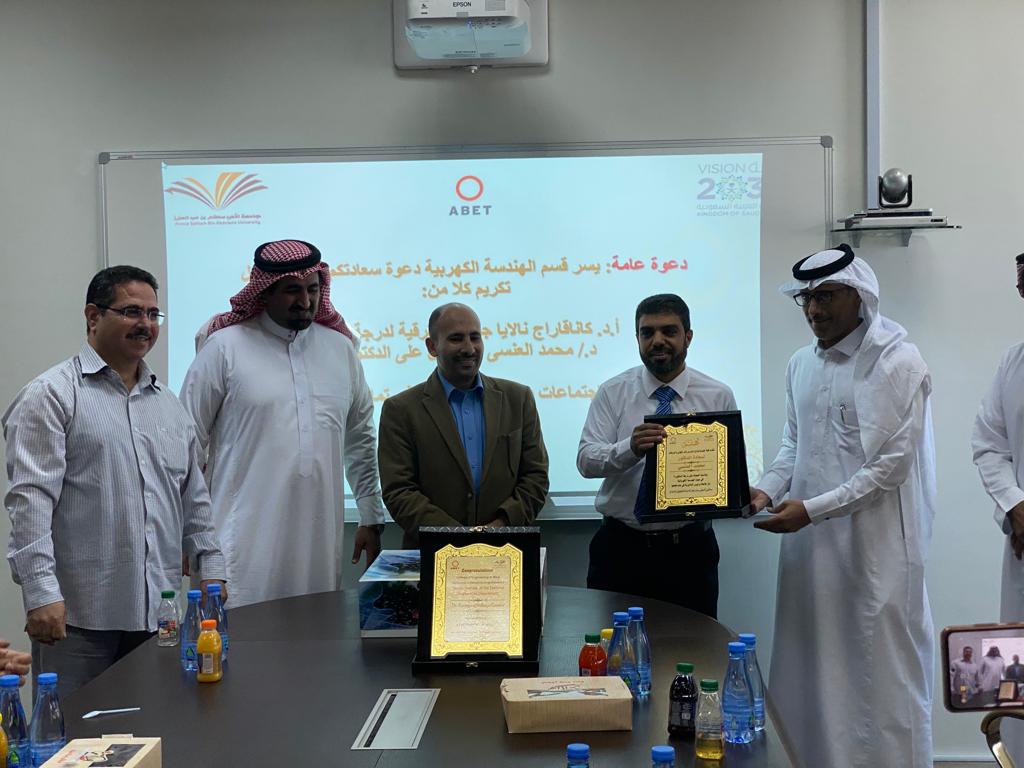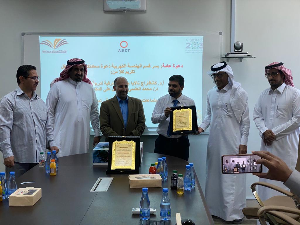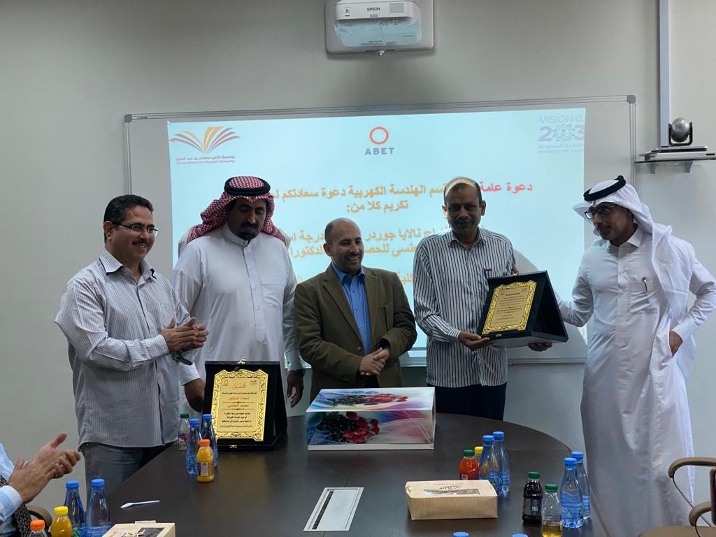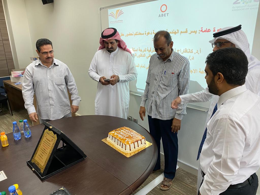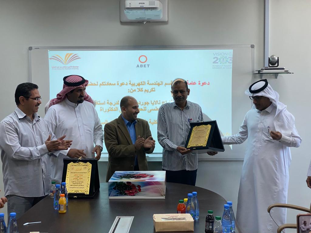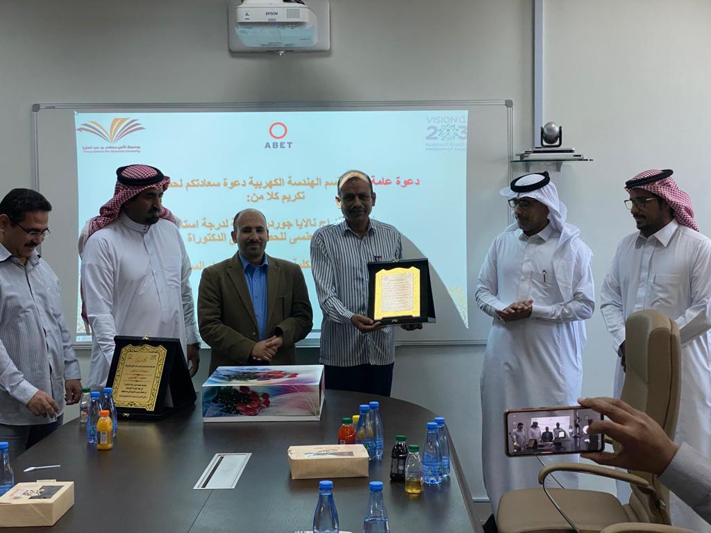 On Monday, 6/6/2021 AD, the College of Engineering in Wadi Al-Dawasir held a ceremony honoring two faculty members that the Scientific Council of Prince Sattam bin Abdulaziz University in Al-Kharj recommended in its seventh session for the academic year 1443 AH on Wednesday 20/08/1443 AH corresponding to 23/03/2022 AD to promote Dr. Kanagaraj.