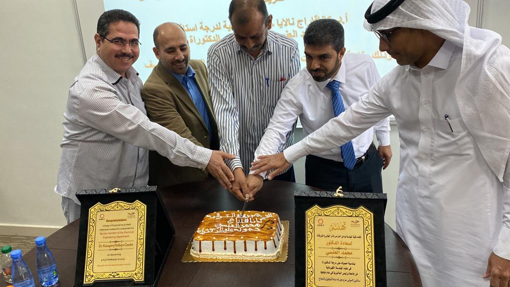 The College of Engineering also congratulated colleague Dr. Muhammad Al-Ansi - lecturer in the Department of Electrical Engineering - on obtaining a doctorate in communications engineering from Perlis University in Malaysia.
