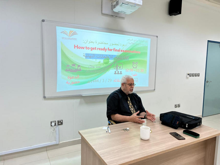 The Student Activities Committee held on Tuesday 25-10-2022 at 11:30 a.m. a workshop entitled (How to get ready for final examinations) and the lecture was given by Dr. / Ahmed Galal, member of the Student Activities Unit at the College and the number of attendees reached 14 students.