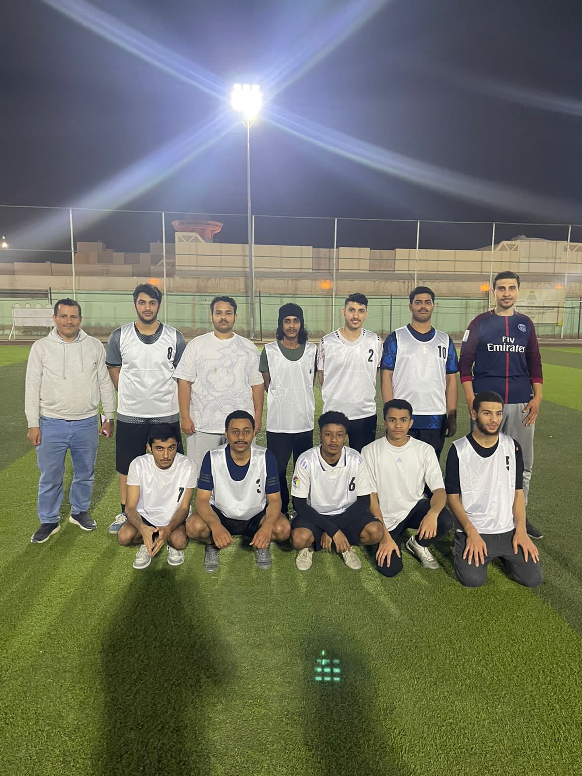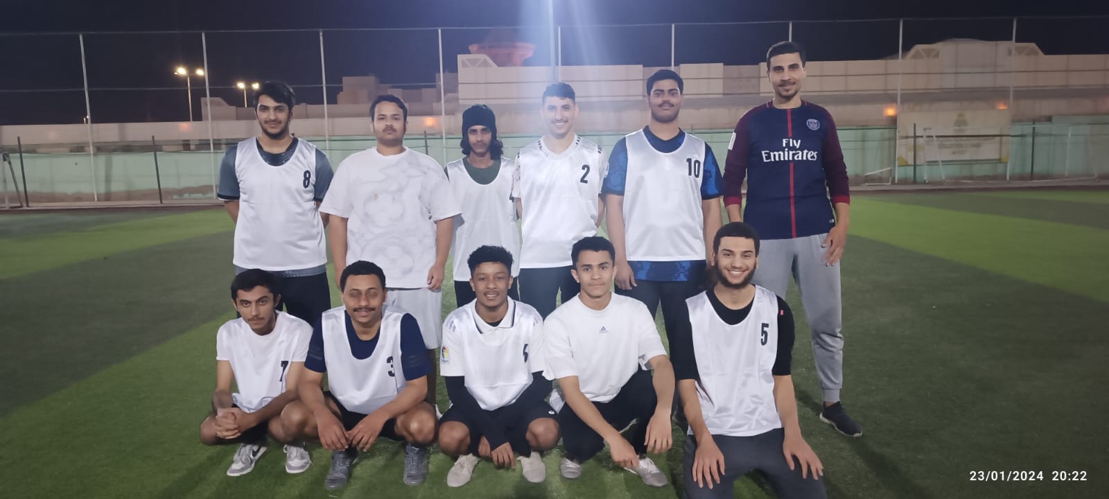 The College of Engineering in Wadi Al-Dawasir, represented by the Sports Activities Unit, participated in the First Sports Olympiad of Prince Sattam bin Abdulaziz University in the football tournament, where the college team played against the College of Science in Al-Sulail on Tuesday, 01/23/2024.